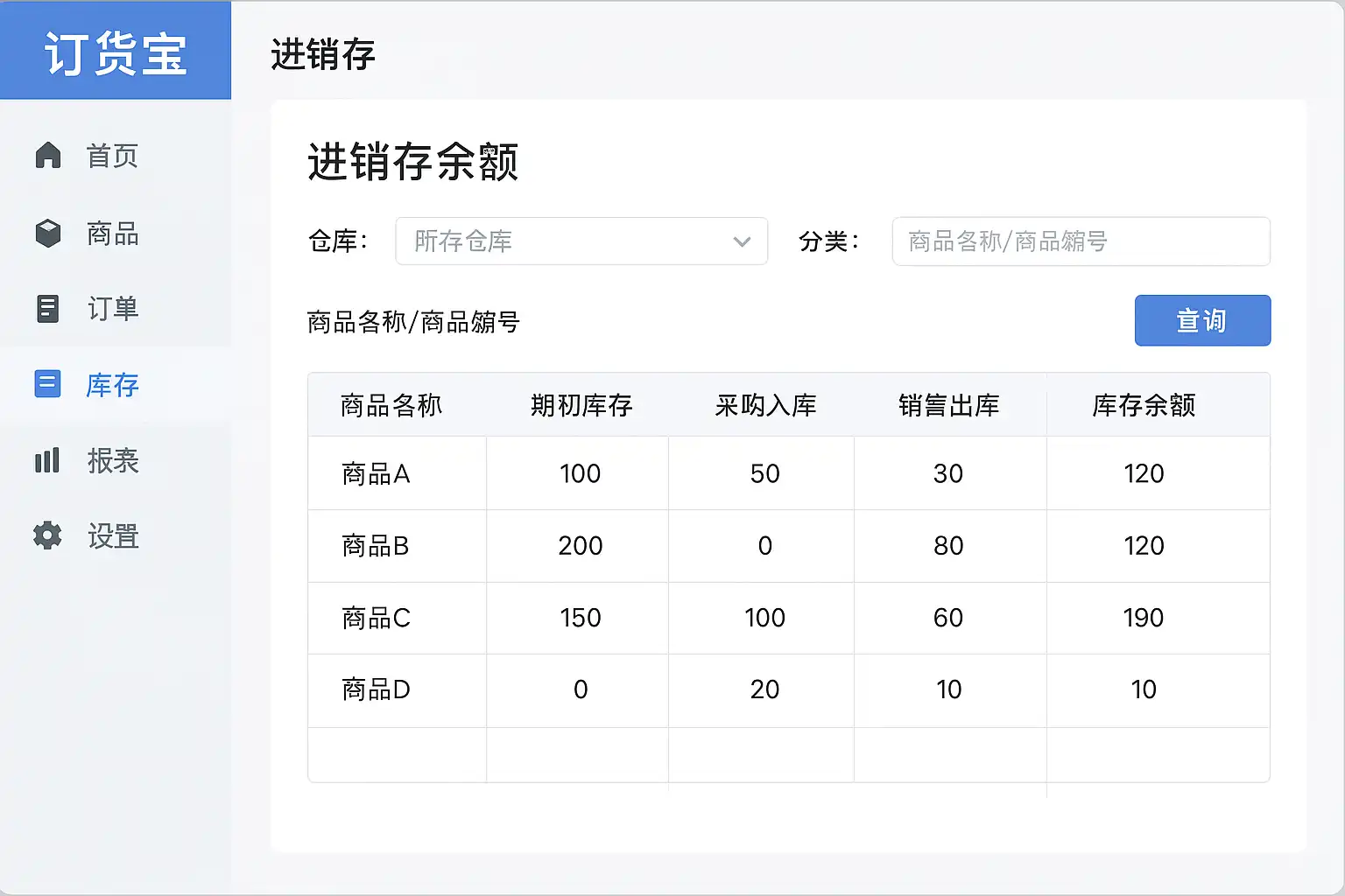 一、订货宝进销存余额查询核心方法