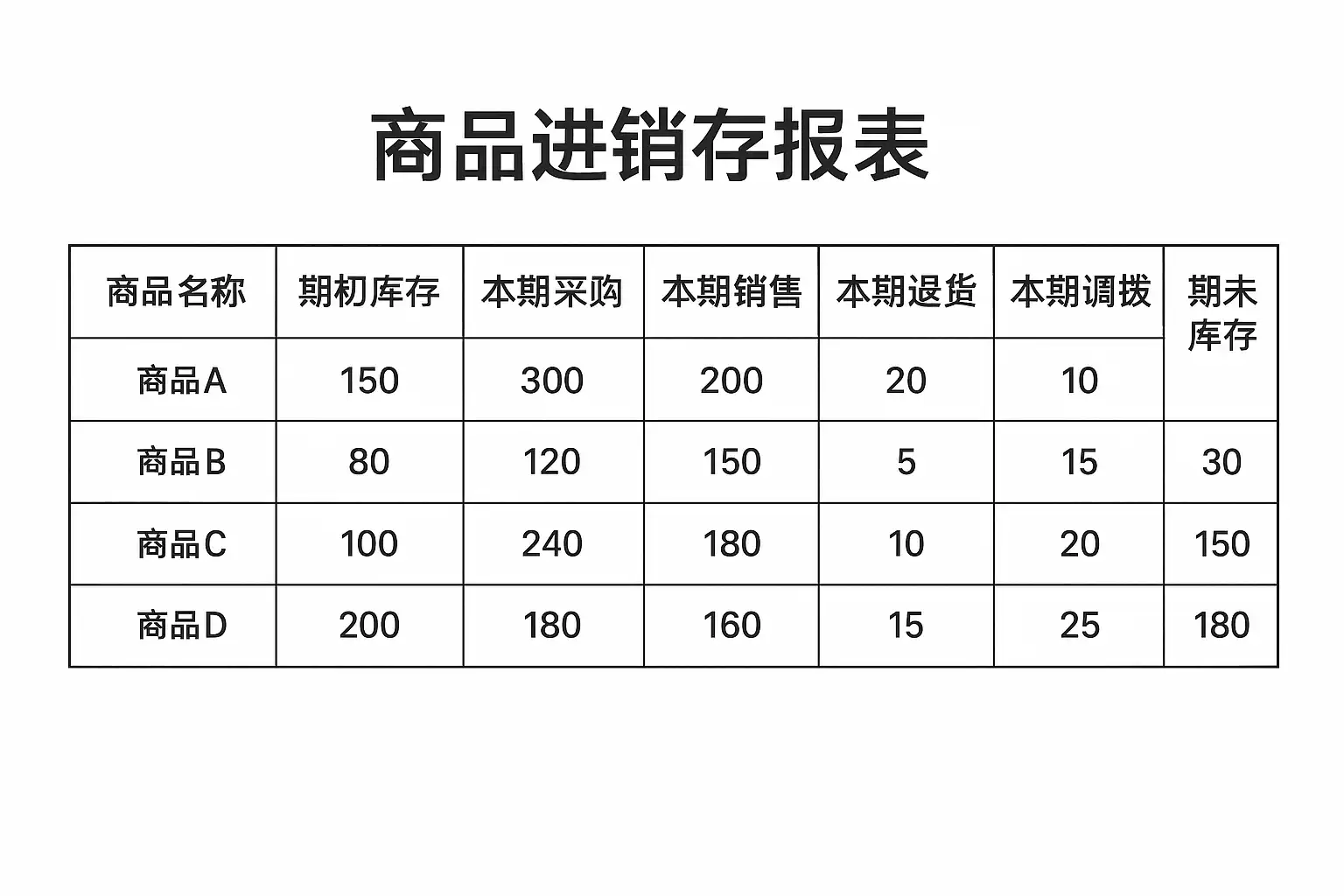 | 期末库存数量 | 报表周期结束时实际剩余库存 |