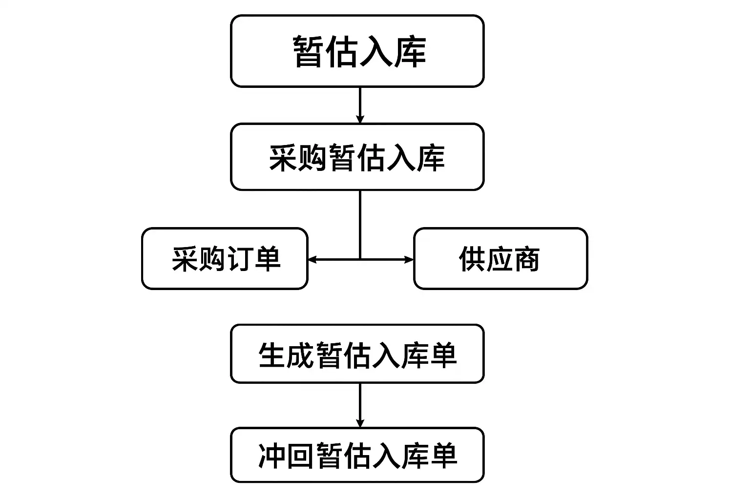- 仓管员录入采购到货单 → 标记“暂估”