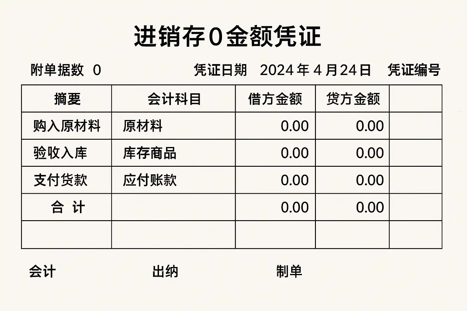 进销存0金额怎么做凭证