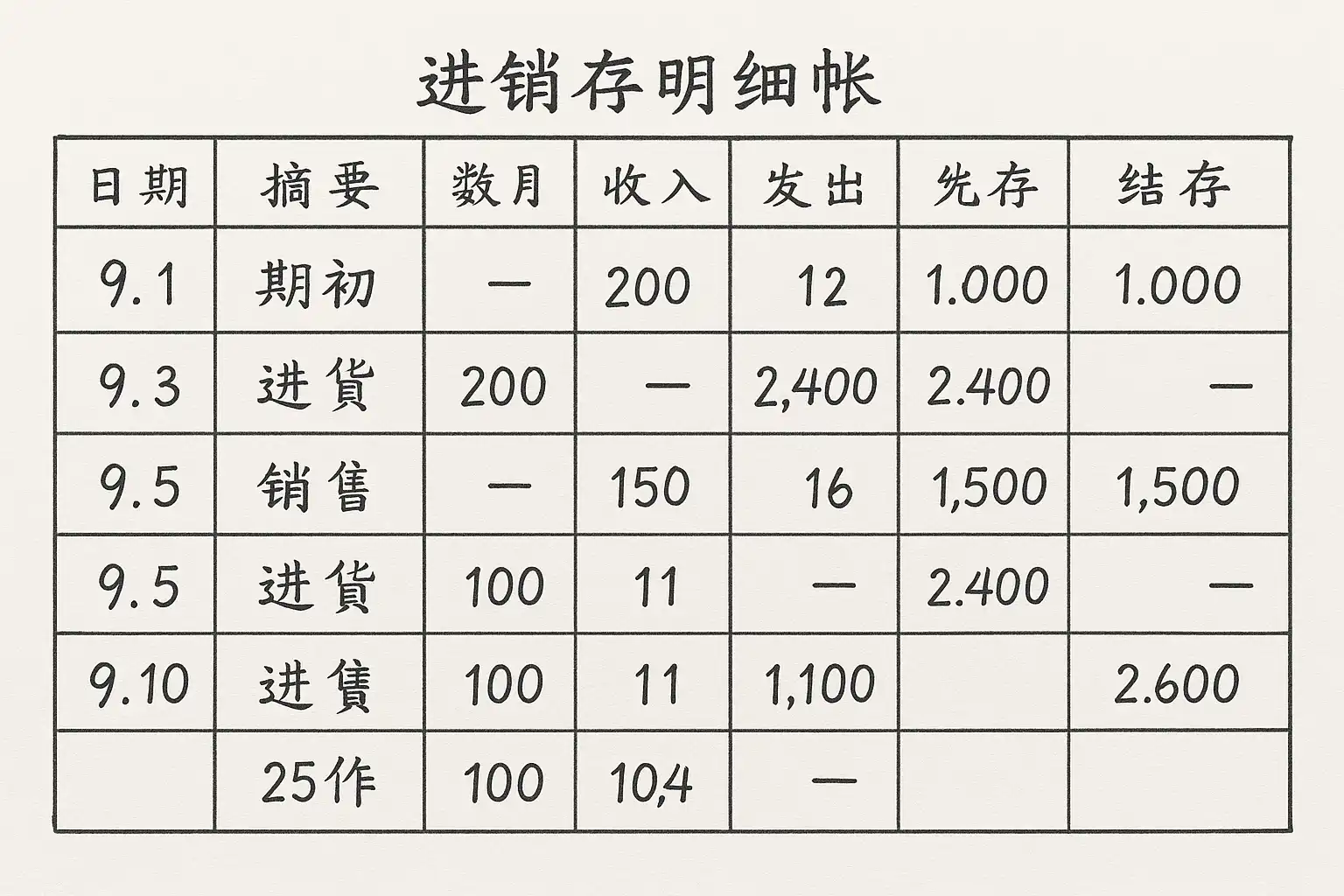 一、进销存明细帐数字填写的基本原则