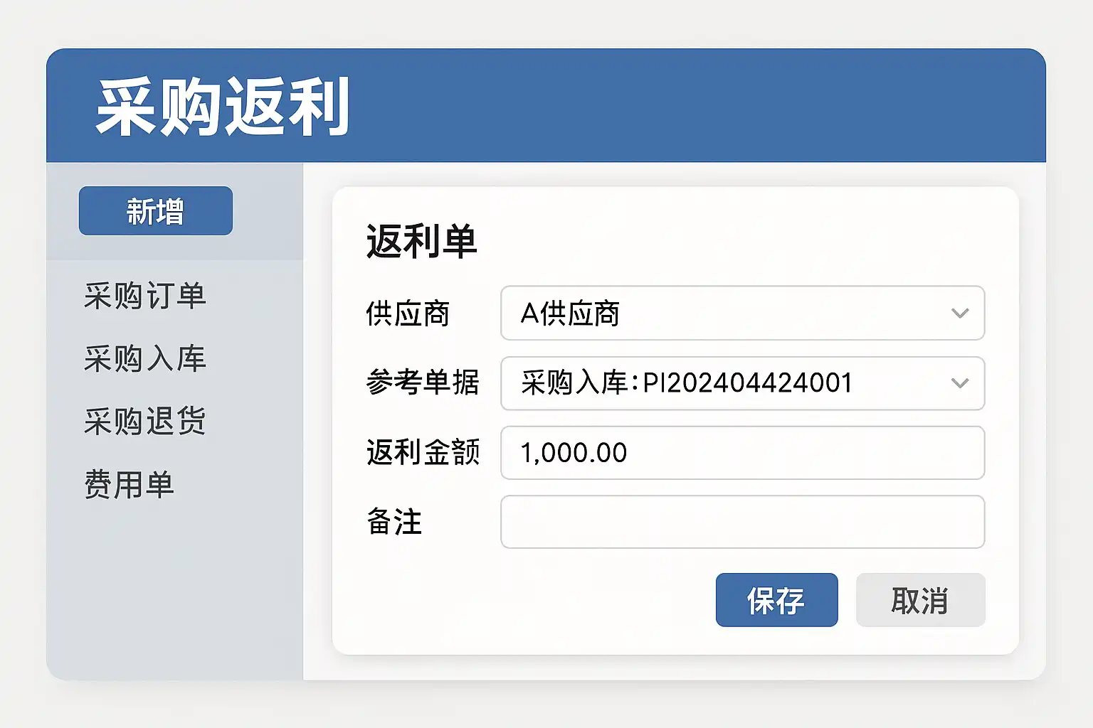 - 在采购单或发票中记录实际支付金额与返利金额。