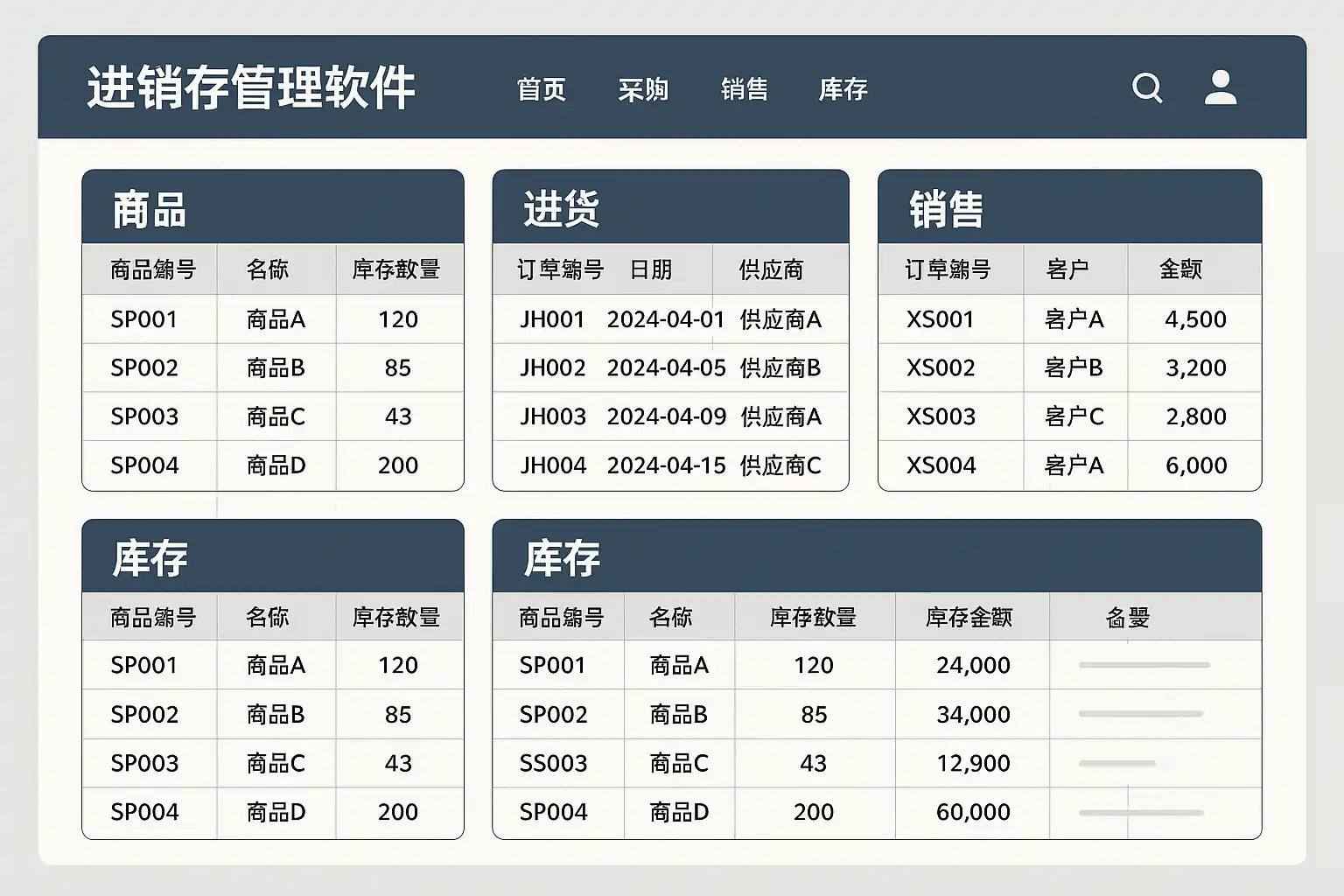 - 自动同步:部分高级进销存软件支持与POS系统、电子商务平台等自动同步销售和采购数据,提升数据准确性。
