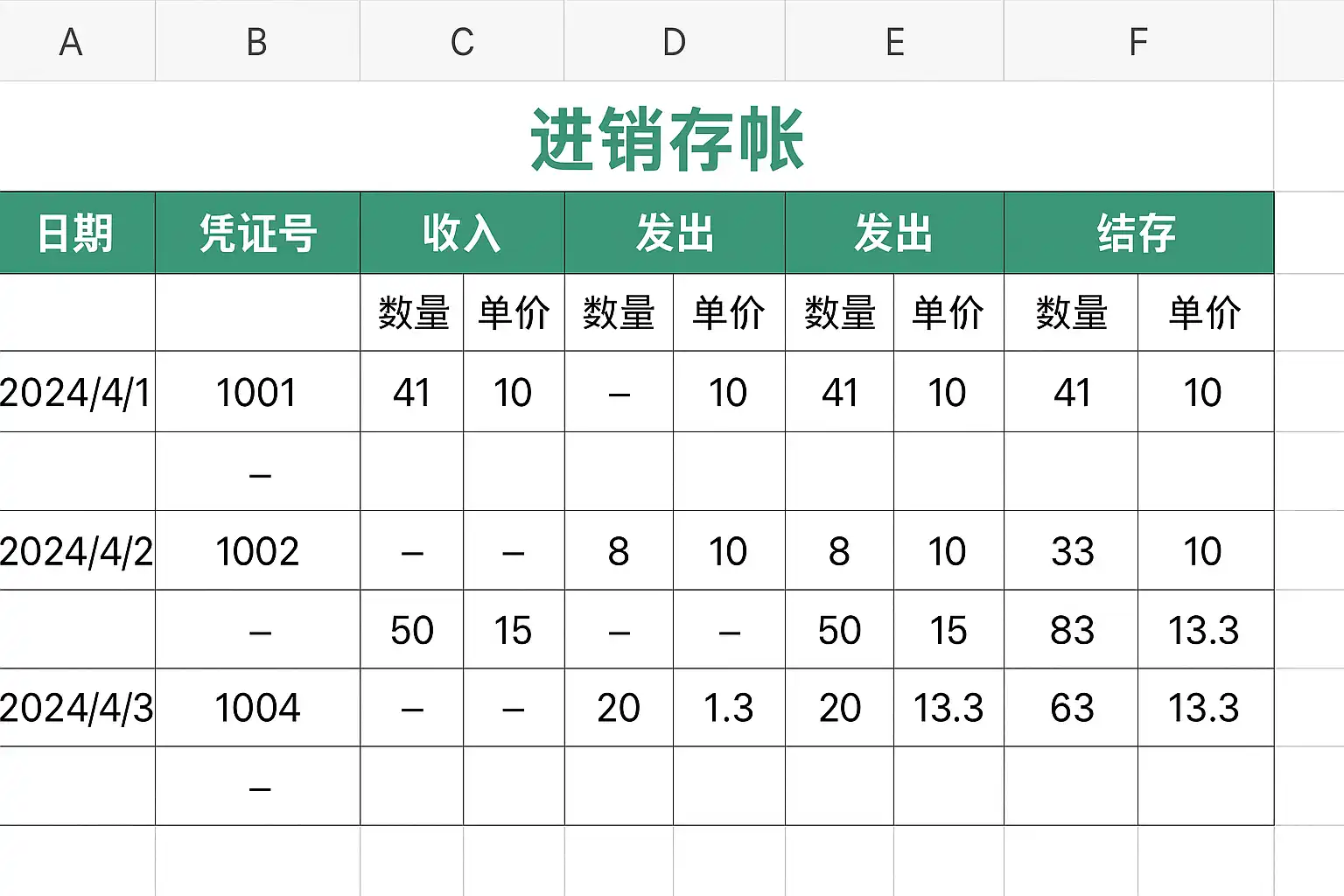 进销存帐excel中怎么做