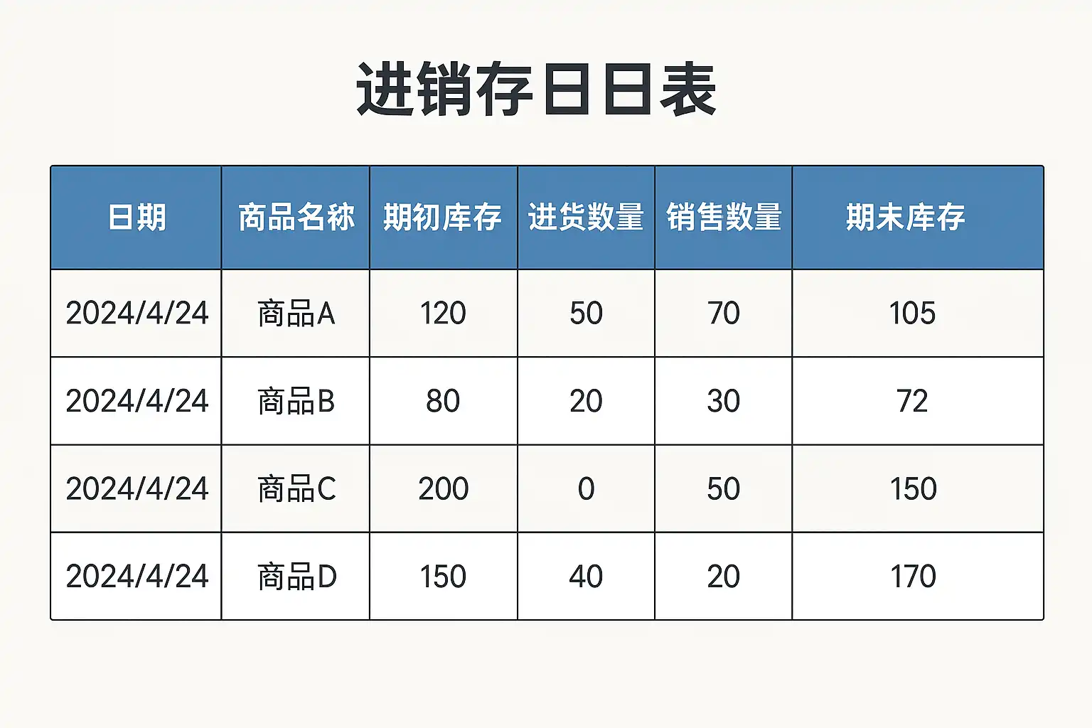 | 期末库存 | 当天结束时各商品实际在库数量 |