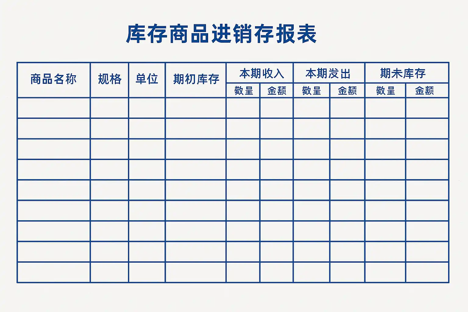 - 本期入库数量和金额:记录本期所有采购、退货入库数据。
