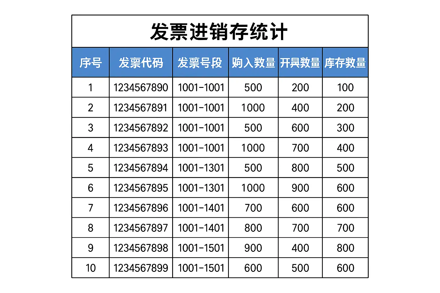 制作高效的发票进销存统计表格,应包含以下核心字段:
