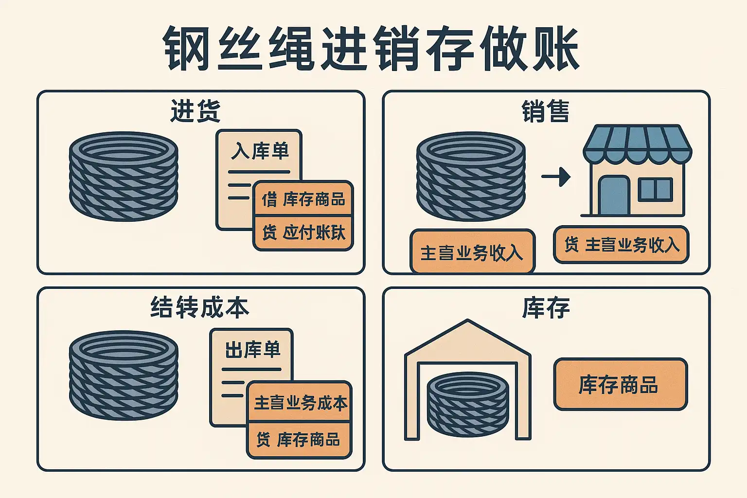 一、明晰钢丝绳进销存做账的基本流程