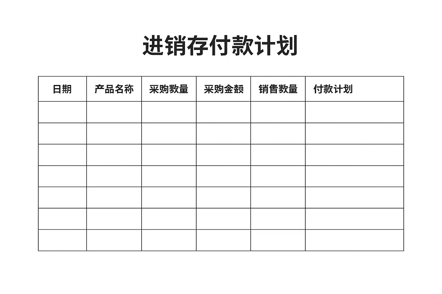 要制定高效实用的进销存付款计划表格,需要先理清其基本结构。以下为典型表头字段设计建议: