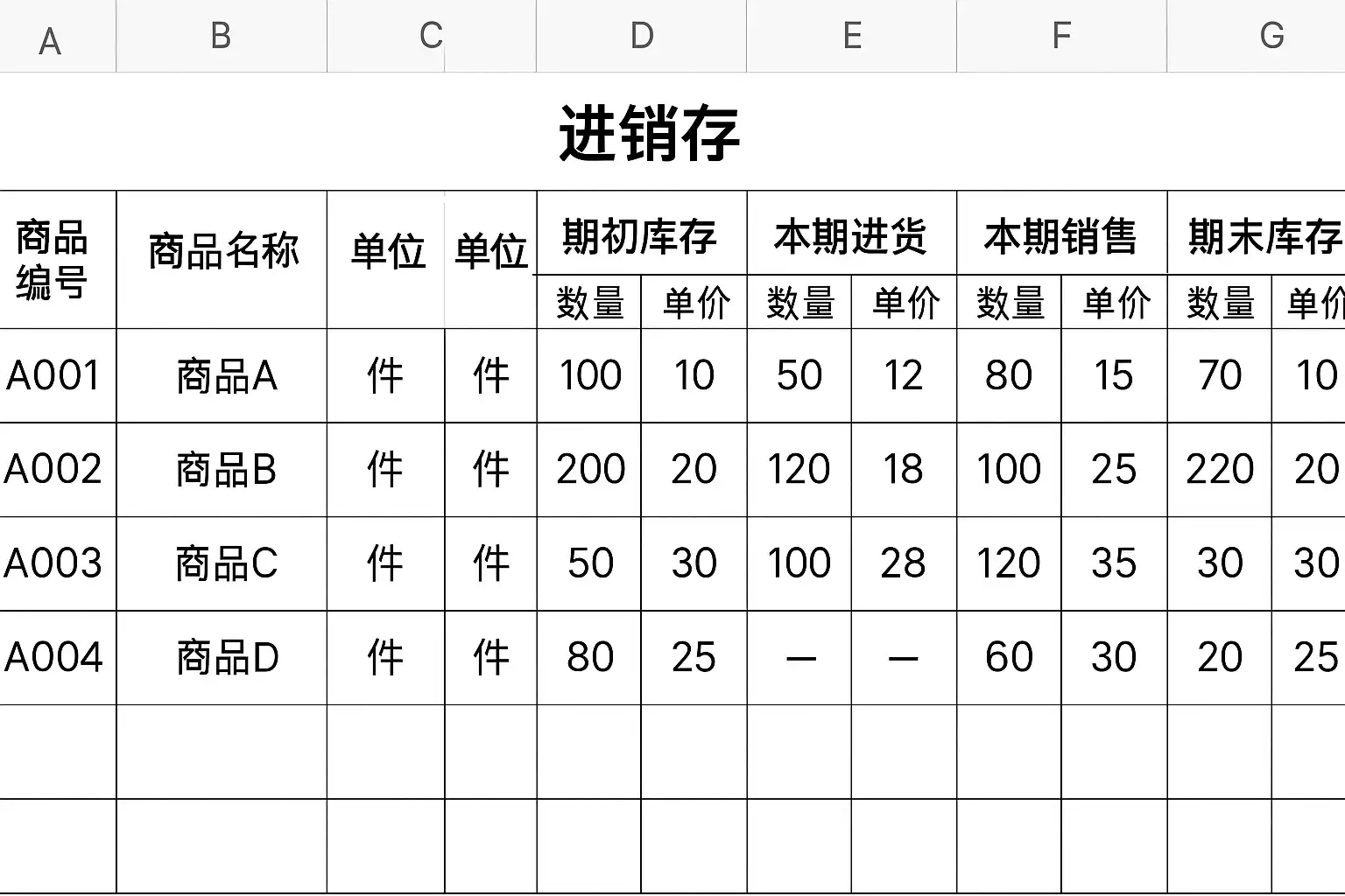 - B列为“期初库存”