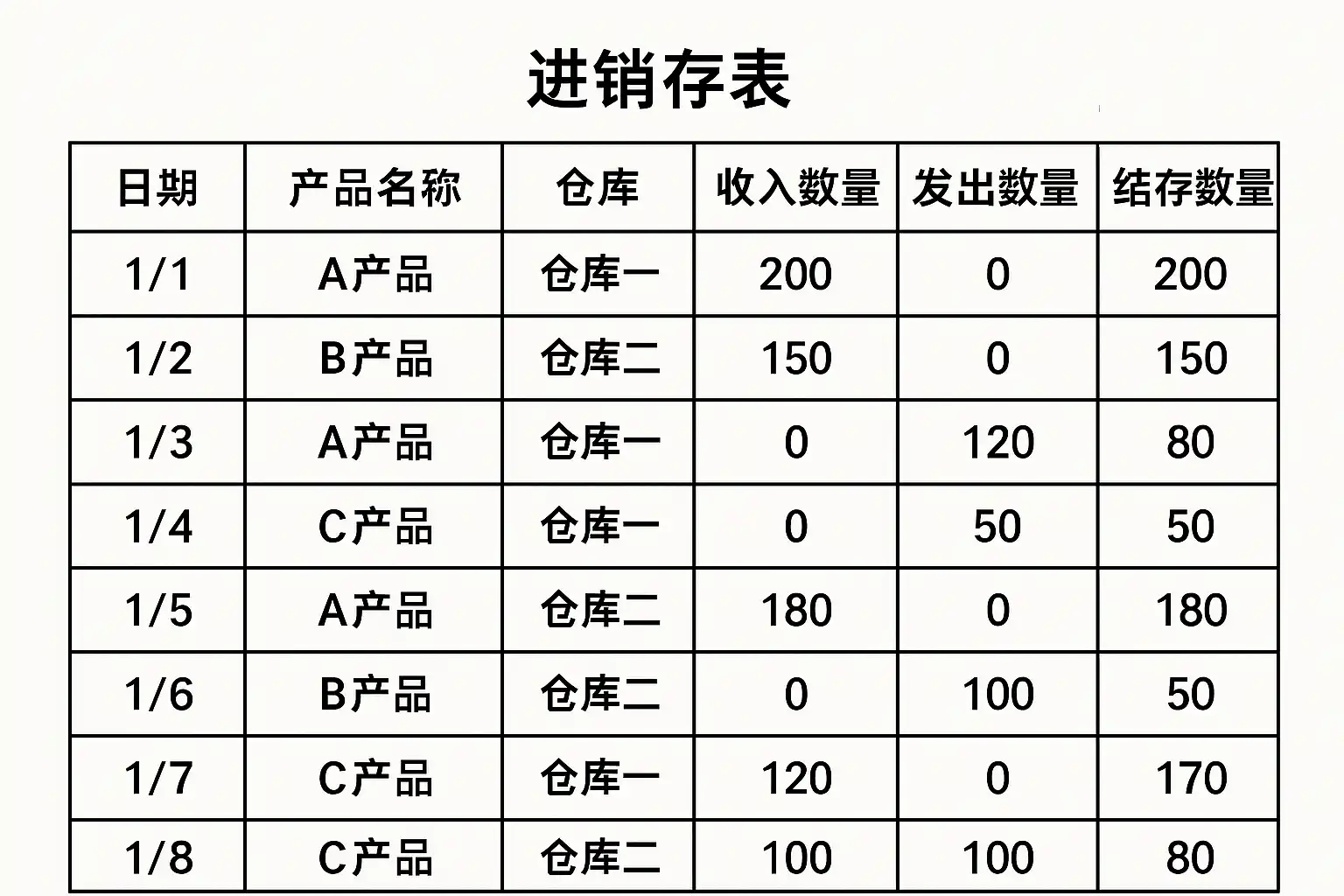 | 入库流水 | 记录所有入库动作 | 日期、商品名、数量来源(采购/退货)等 |