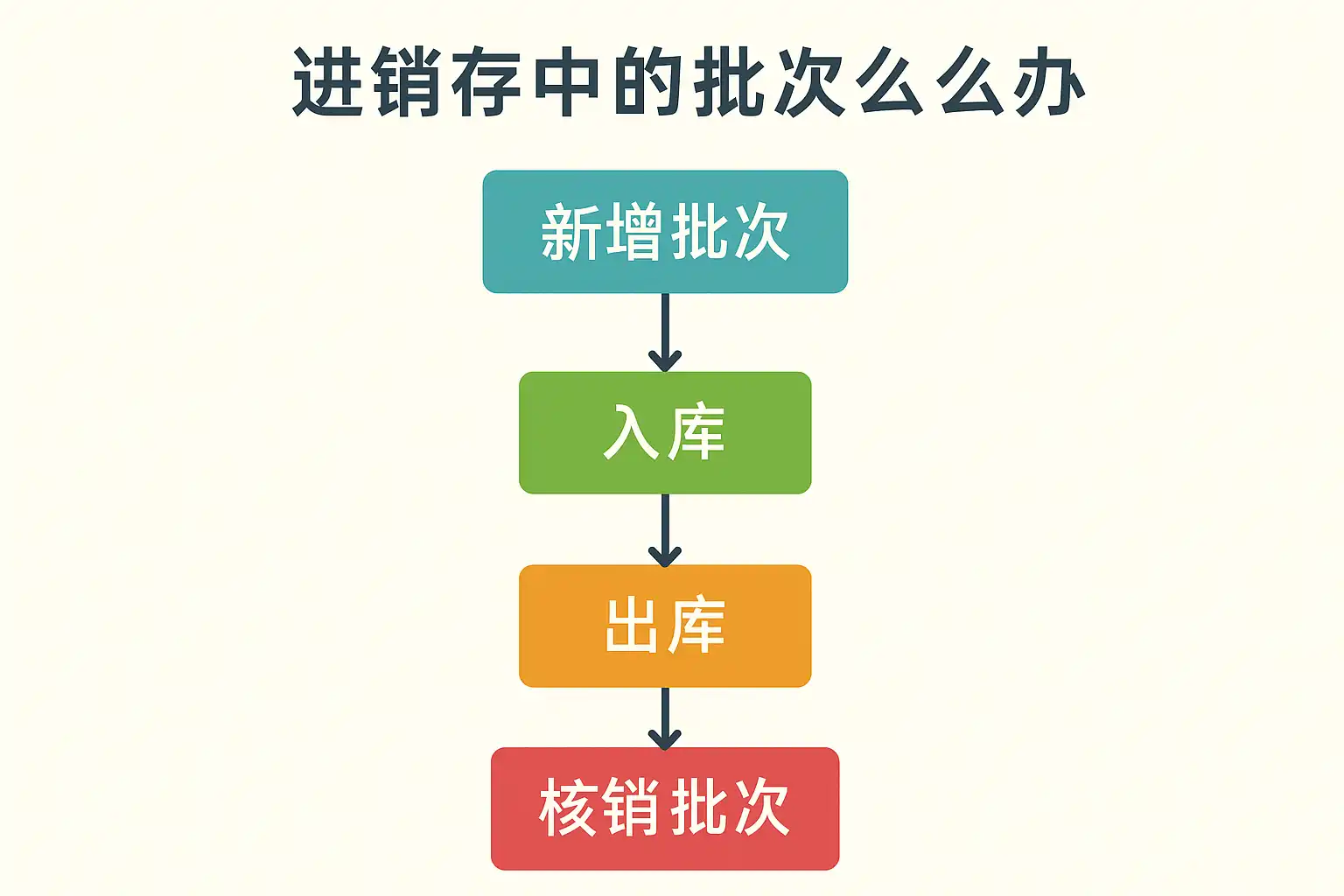 - 每当有新货品采购/生产/入库时,在进销存系统登记对应的“批次号”,记录详细信息(供应商、有效期等)。
