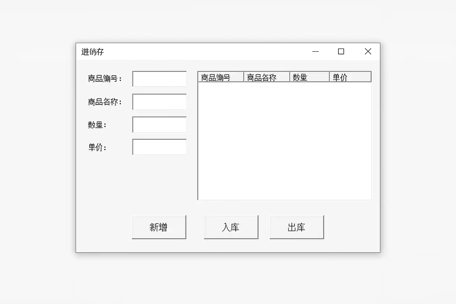| 4 | 编写各控件对应的事件代码,实现入库、出库及查询功能 |