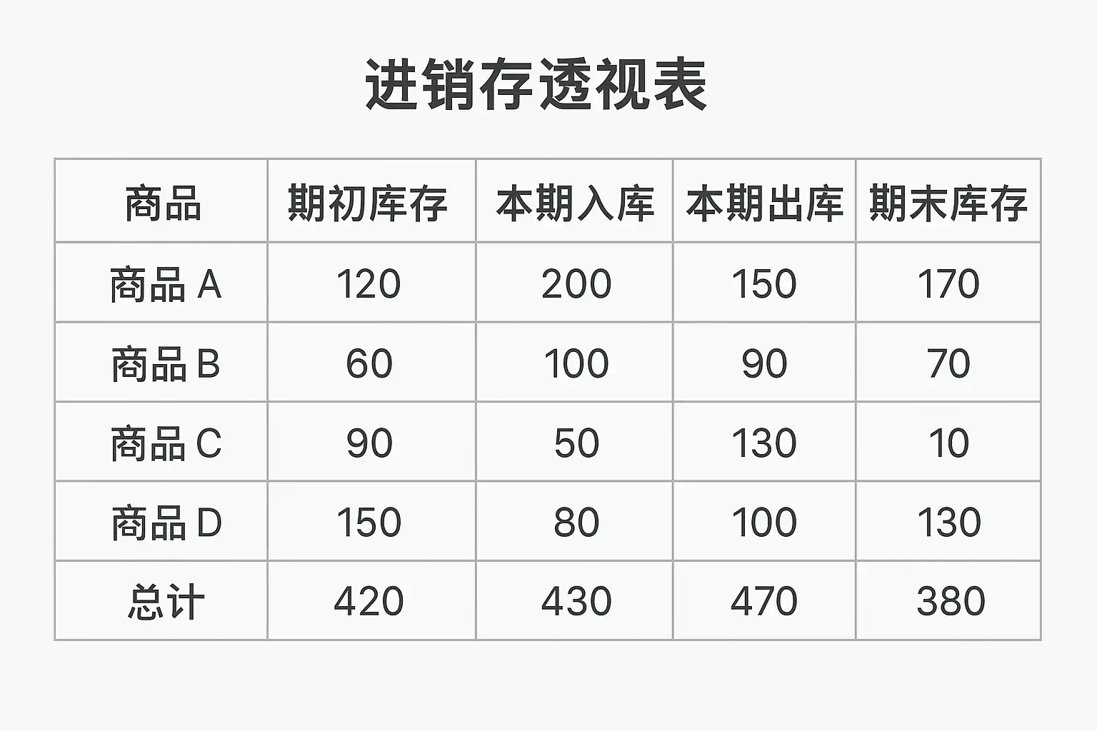 | 3. 工具选择 | 选用如Excel、自定义系统或简道云进销存等具备透视分析能力的平台 |