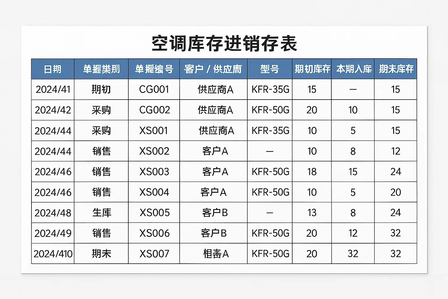 空调库存进销存表格怎么做?