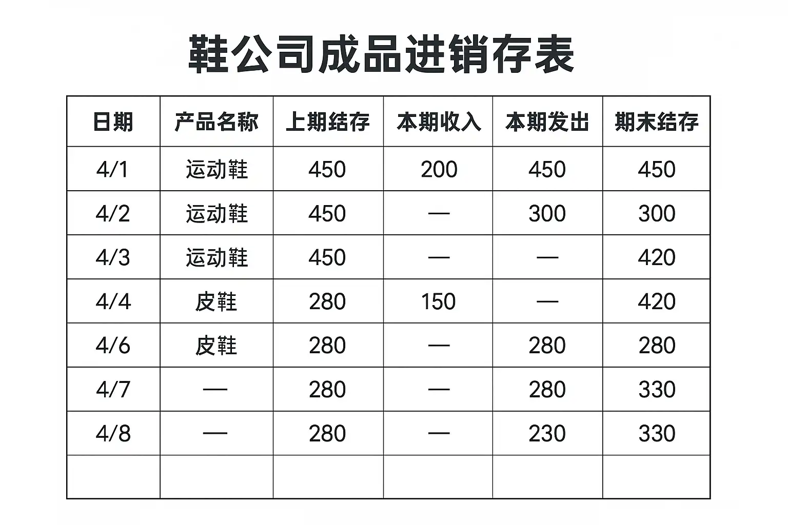 鞋公司成品进销存表格怎么填写最规范?