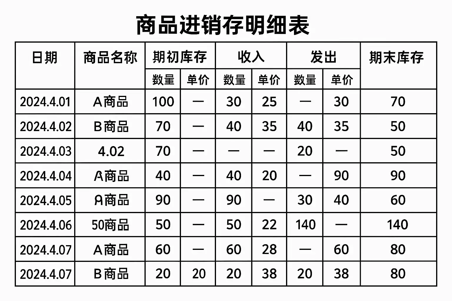 商品进销存明细表格怎么填?