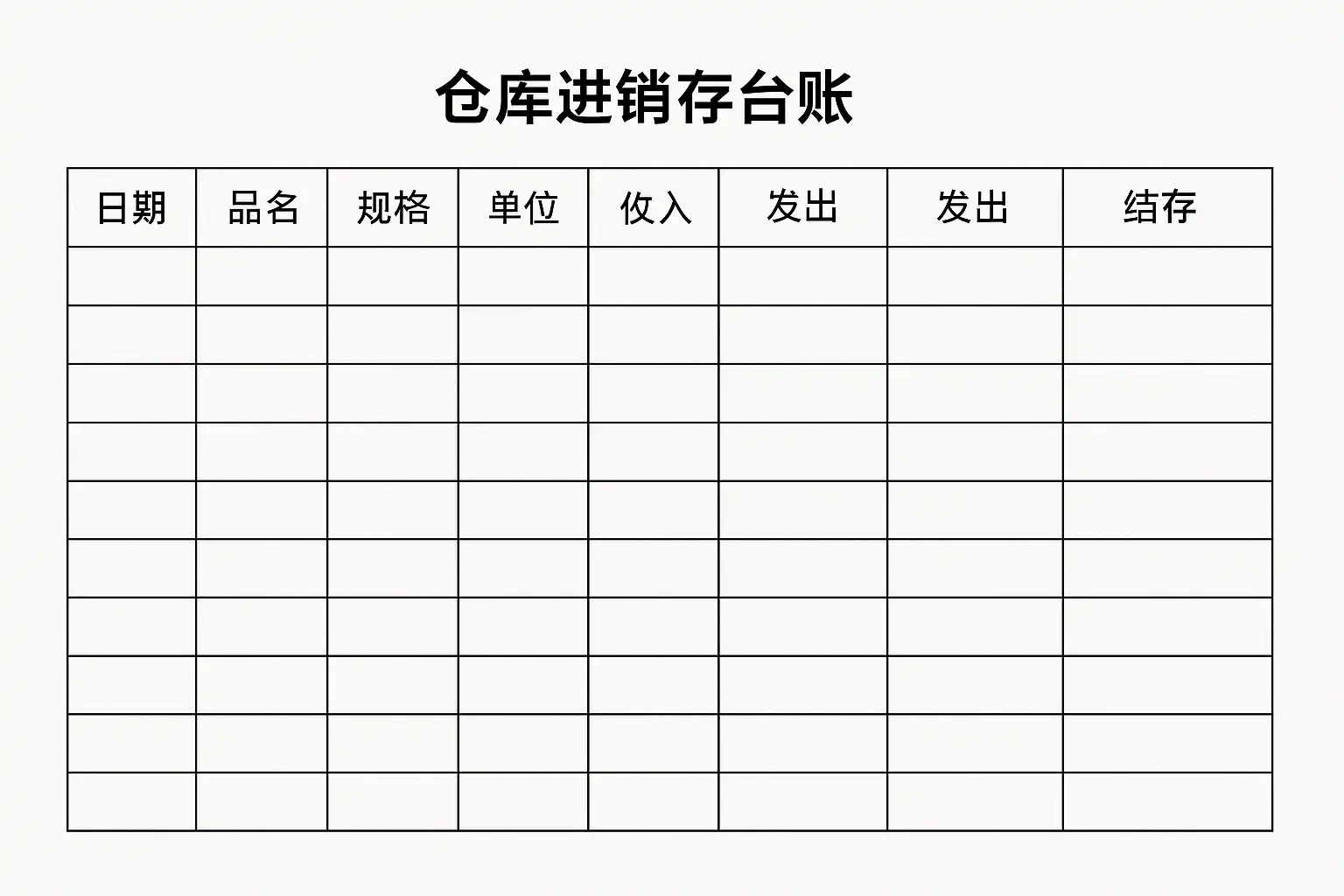 - 每次发生入库/出库业务时,新增一行,并分别填写入/出数量,其余项目保持一致。