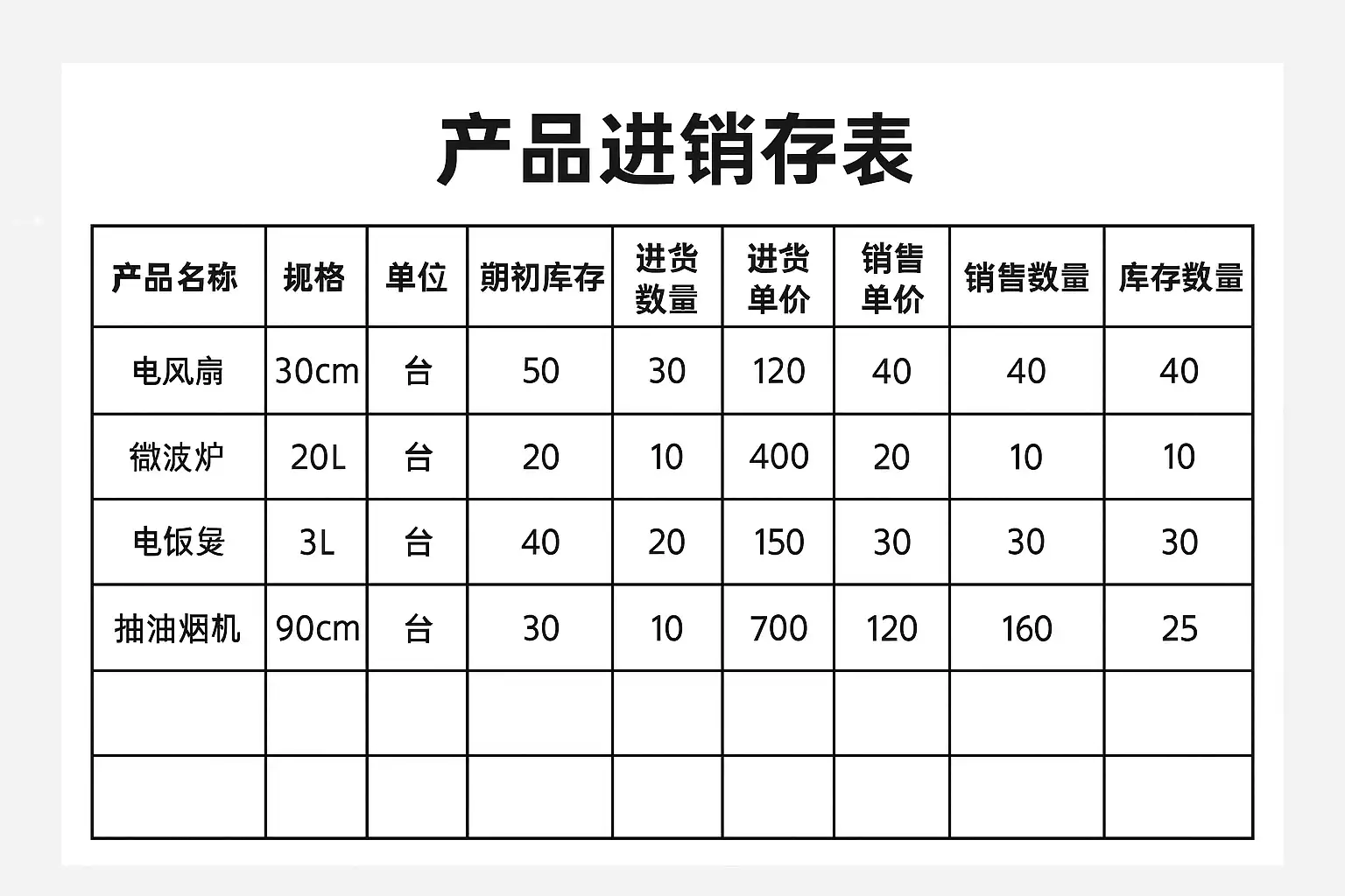 | 期初库存 | 本周期开始时剩余数量 |