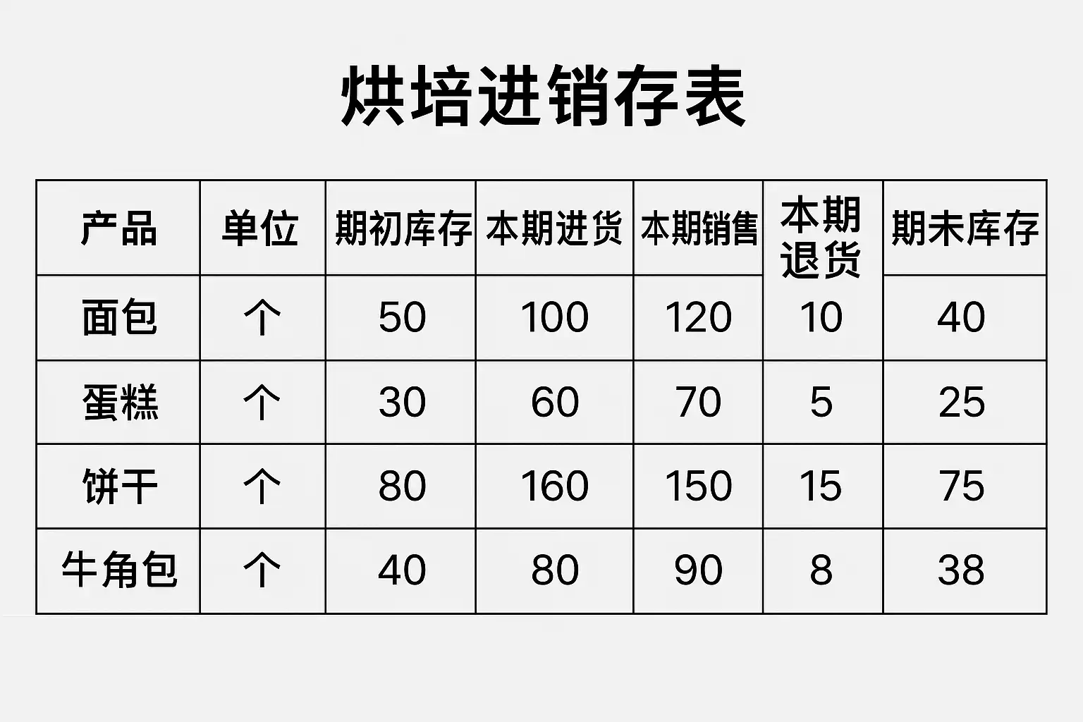 烘焙进销存表格怎么做图片