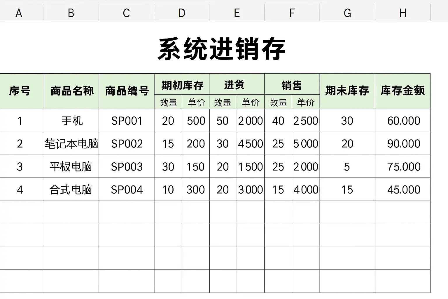 Excel强大的公式体系,是其能胜任简单系统级进销存管理的重要原因。主要体现在以下几个方面: