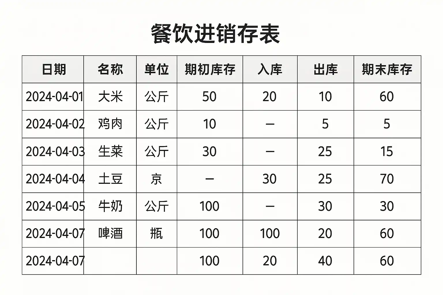 综上所述,高效且规范地制作餐饮行业进销存管理相关的表格及图片,应坚持“科学规划结构+智能可视化展示+灵活自定义扩展”的原则。其中借助[简道云进销存](https://s.fanruan.com/xrxfy)等现代SaaS工具,可以极大提升准确率和工作效率,有利于企业降本增效、防范风险。建议大家优先尝试在线模板,根据自身实际不断优化升级,在团队内部形成良好的信息闭环,从而推动整个经营体系向数字化精细运营迈进!