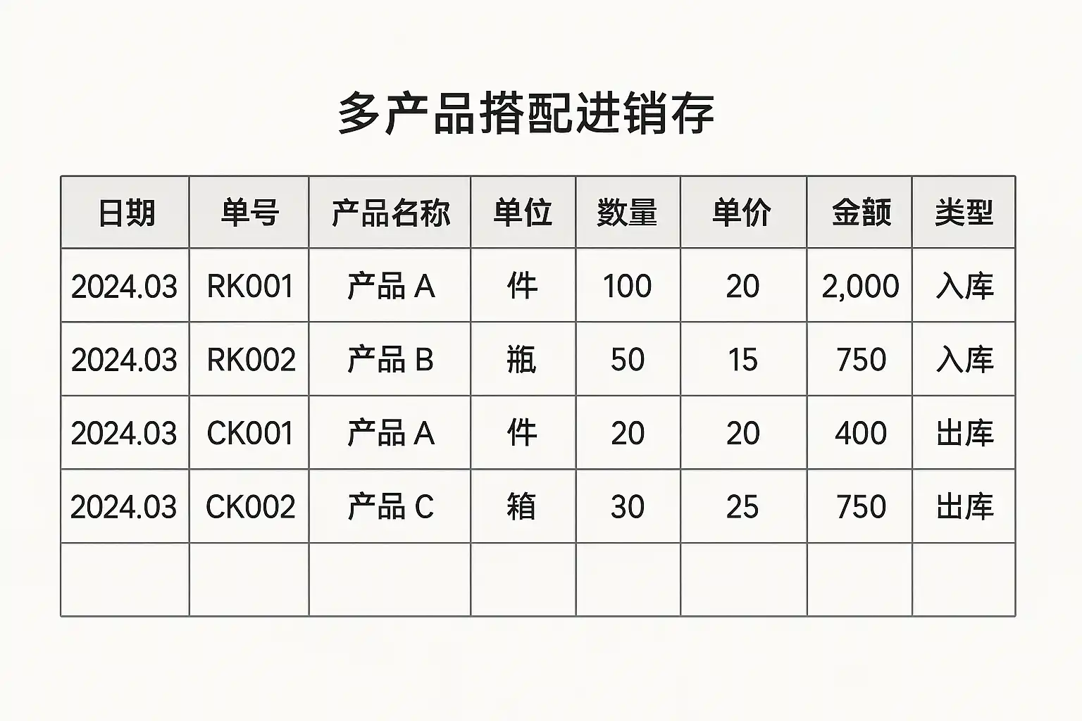三、多产品搭配下的进销存操作流程
