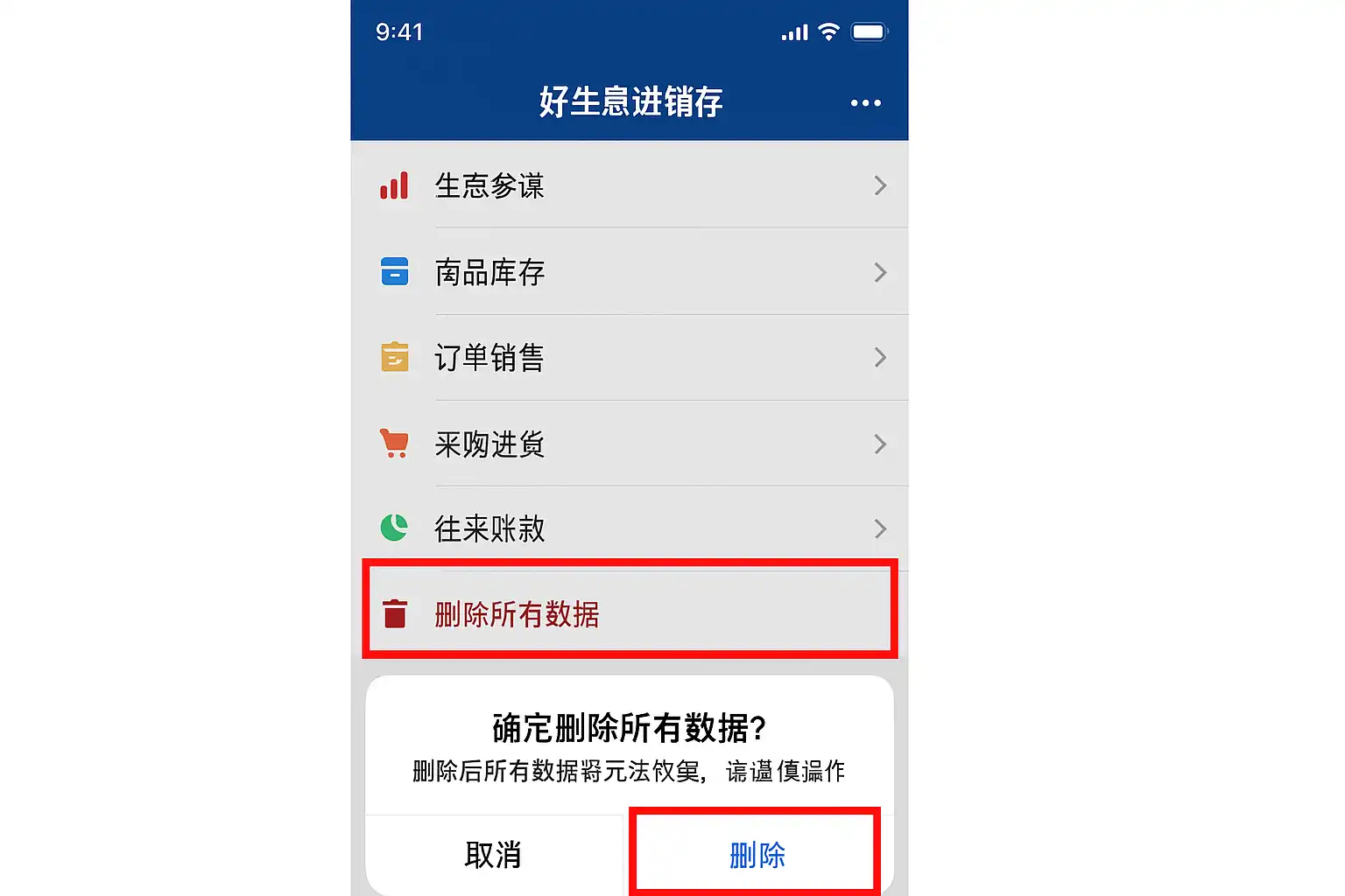 好生意进销存怎么全部删除
