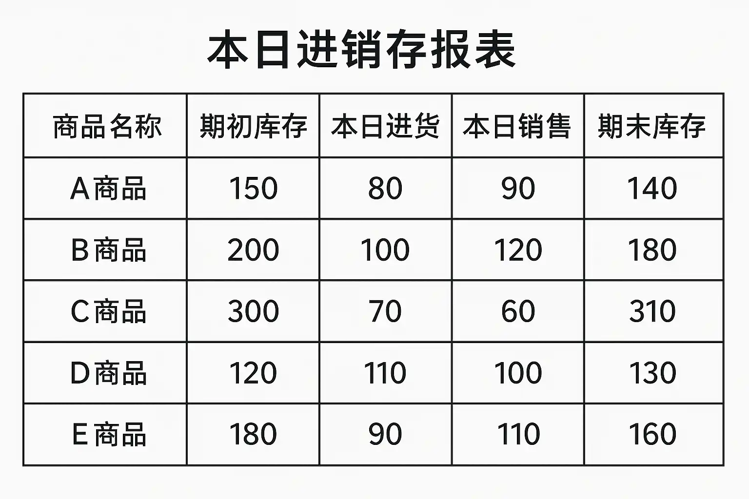 | 期末库存 | 当天结束后的实际库存 |