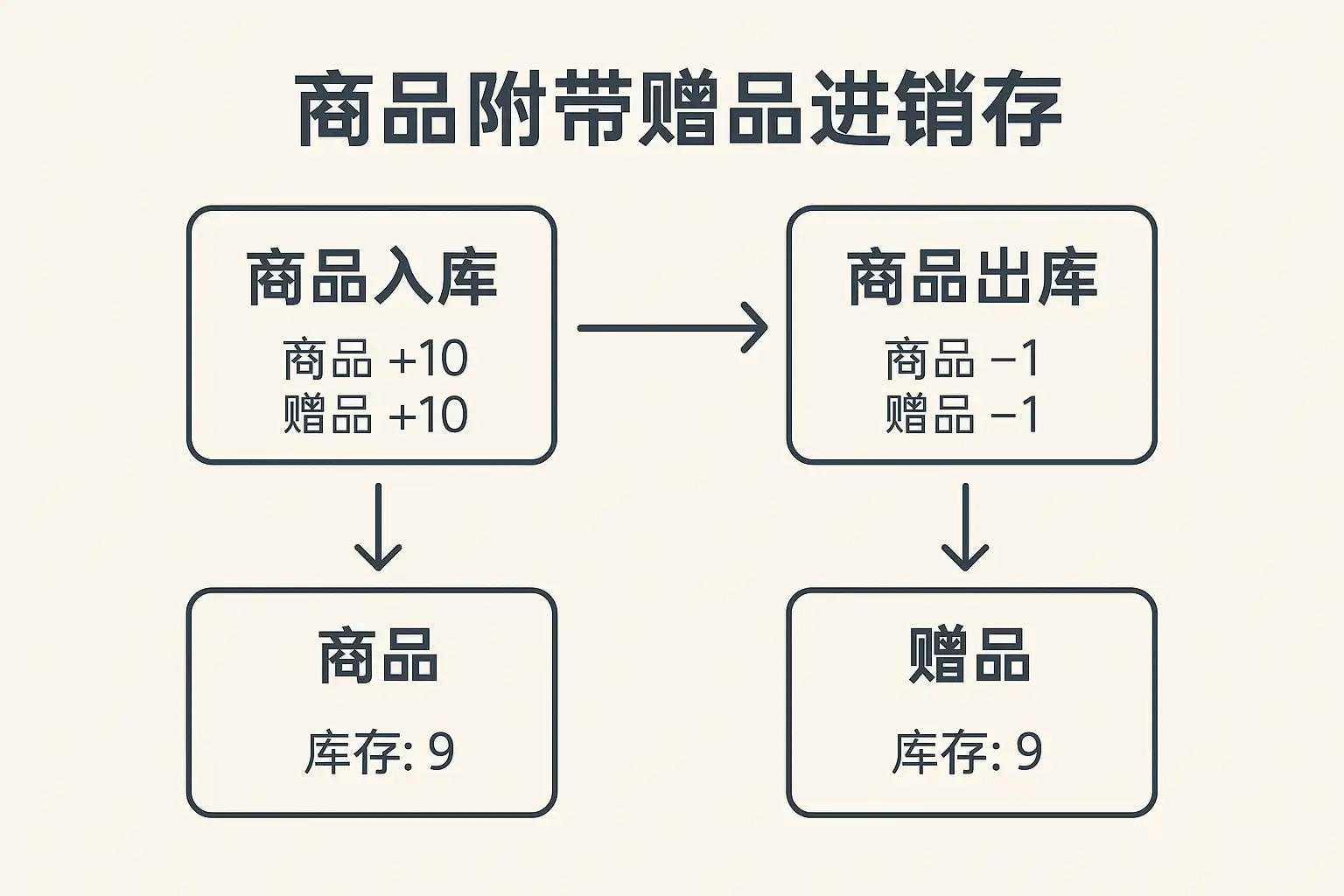 - 出库环节同步扣减主商品与对应数量的赠品;