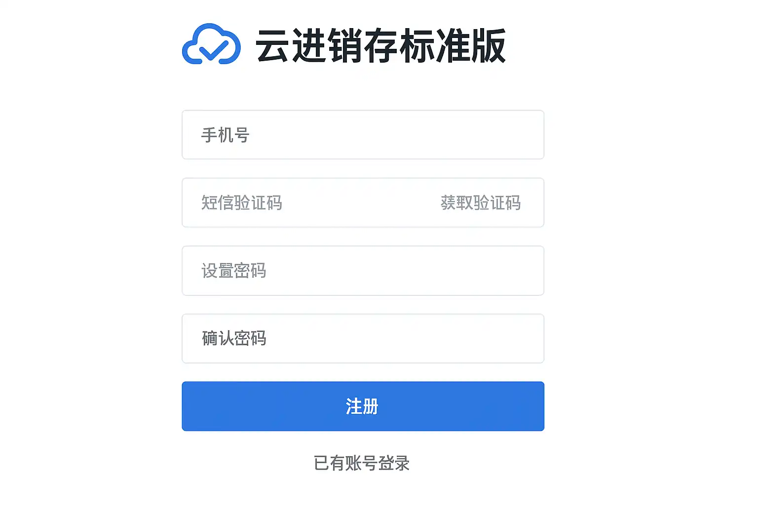 云进销存标准版注册流程简单高效,主要分为以下四步:
