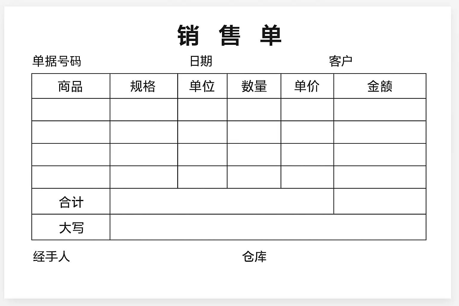 在实际应用中,销售单据通常需包含如下基本信息: