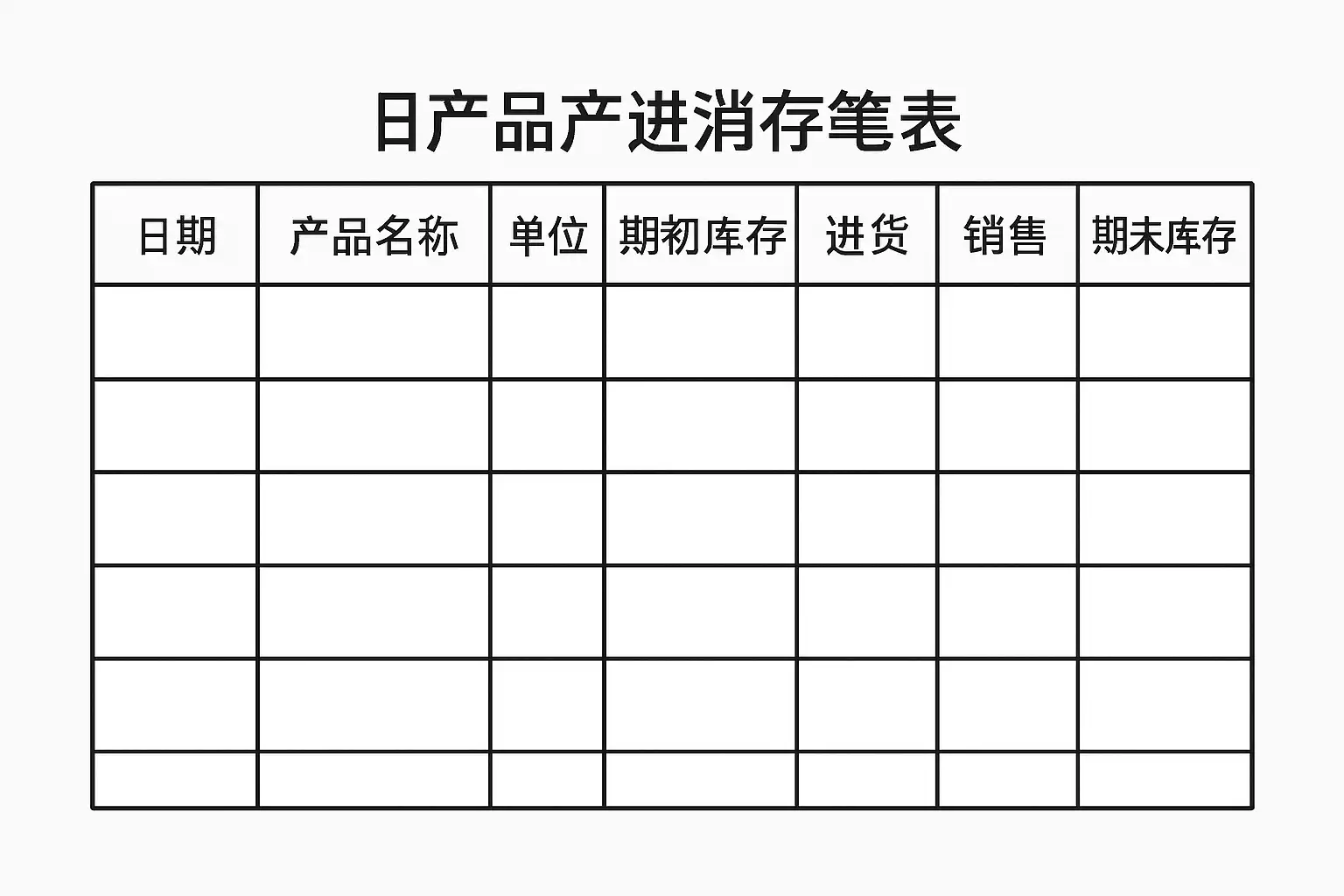 | 日期 | 产品名称 | 期初库存 | 进货数量 | 销售数量 | 报损数量 | 期末库存 |