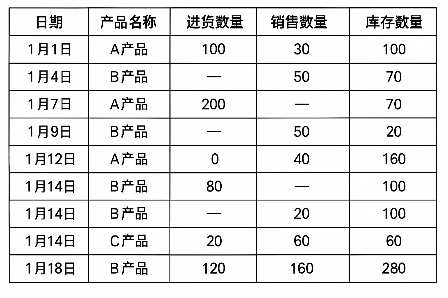 | 单一仓库小型门店 | 简单出入库记录与当前结存 |