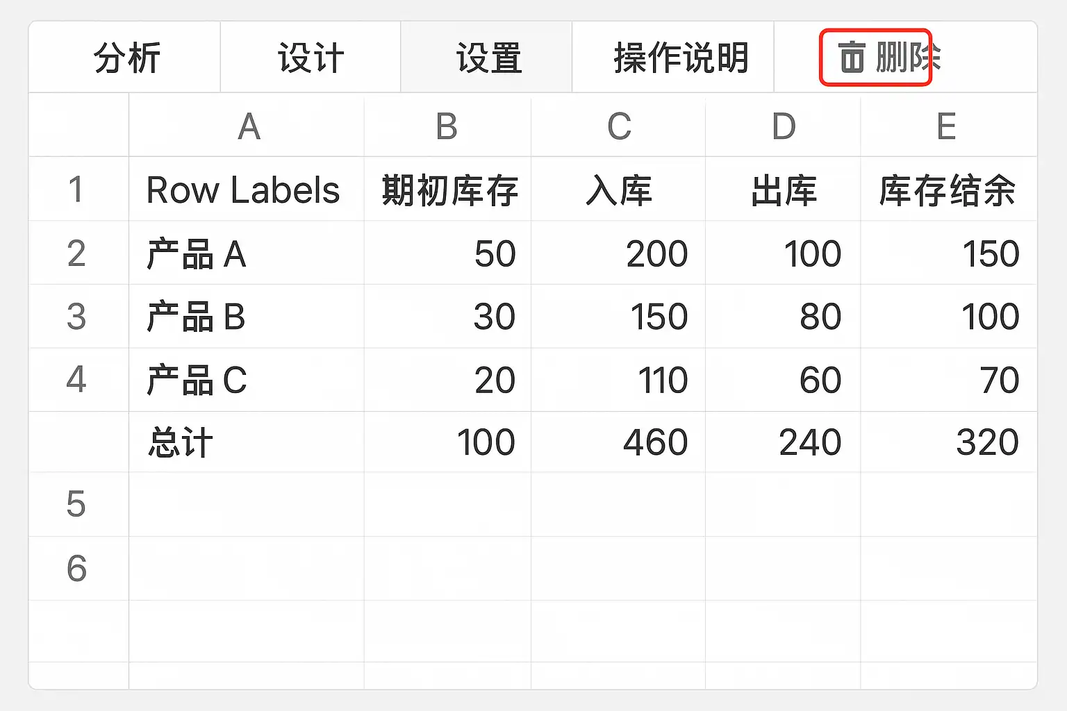 二、常规方法:如何在Excel中删除数据透视表里的进销存表?