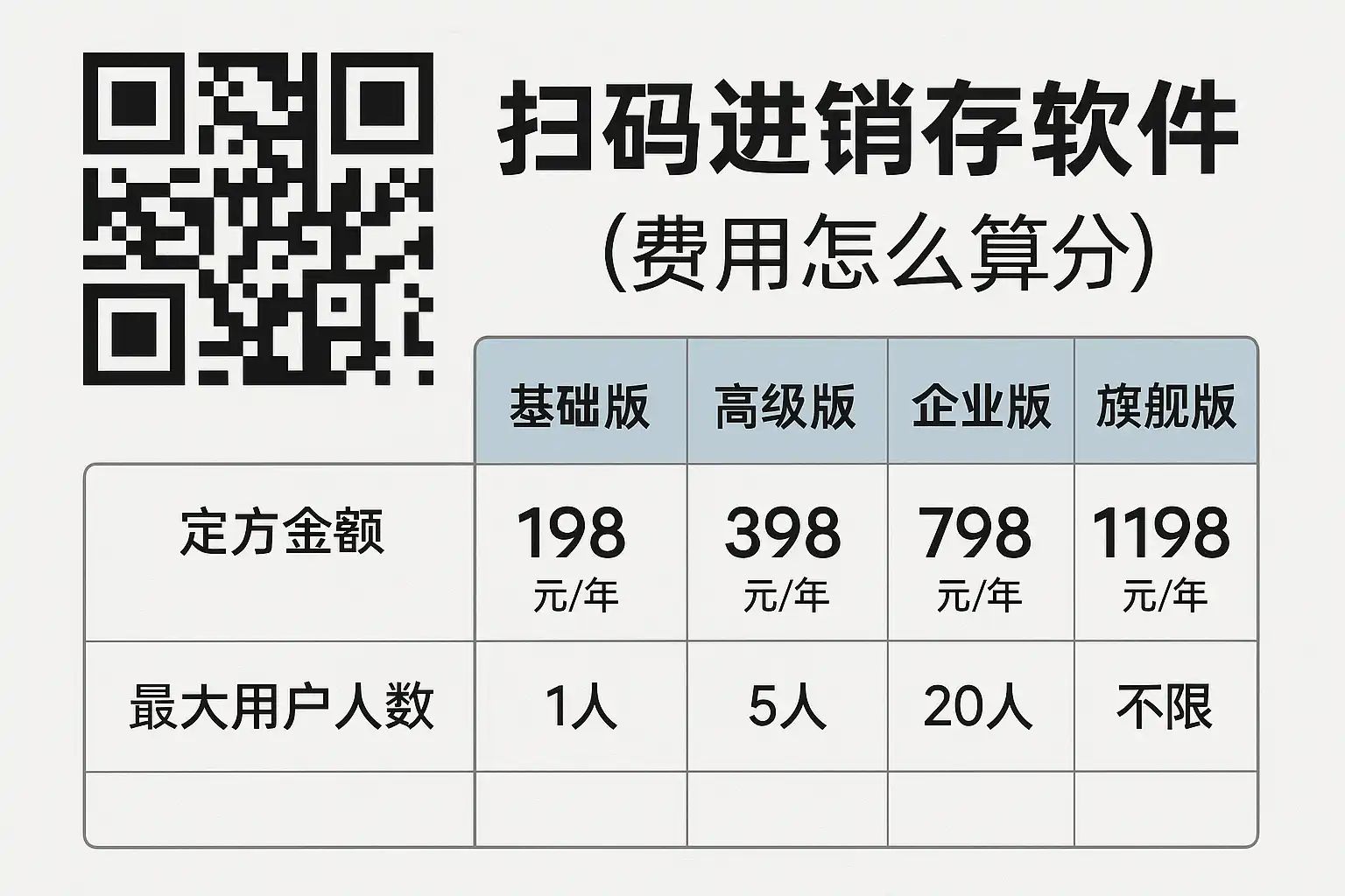 | 功能模块费 | 基础功能(扫码入/出库)、高级功能(多仓、多单位)等 | 功能越全,价格越高 |
