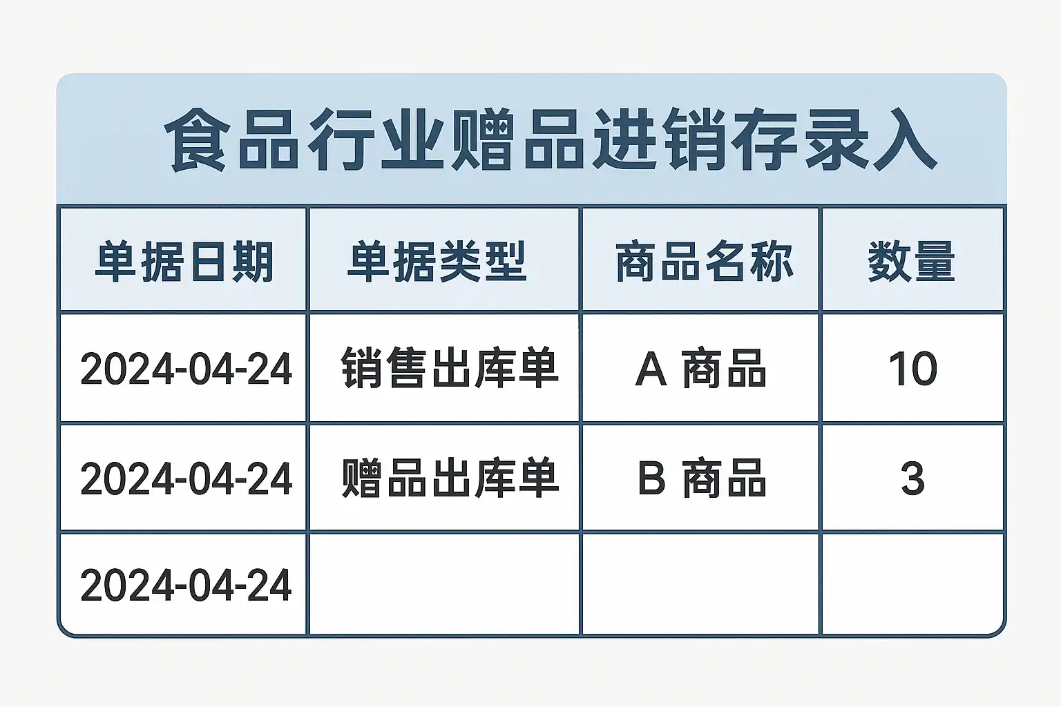 在食品行业中,赠品的录入要区分‘赠品发放’和‘正常销售’两种情况。通常建议使用独立的赠品商品编码录入进销存系统: