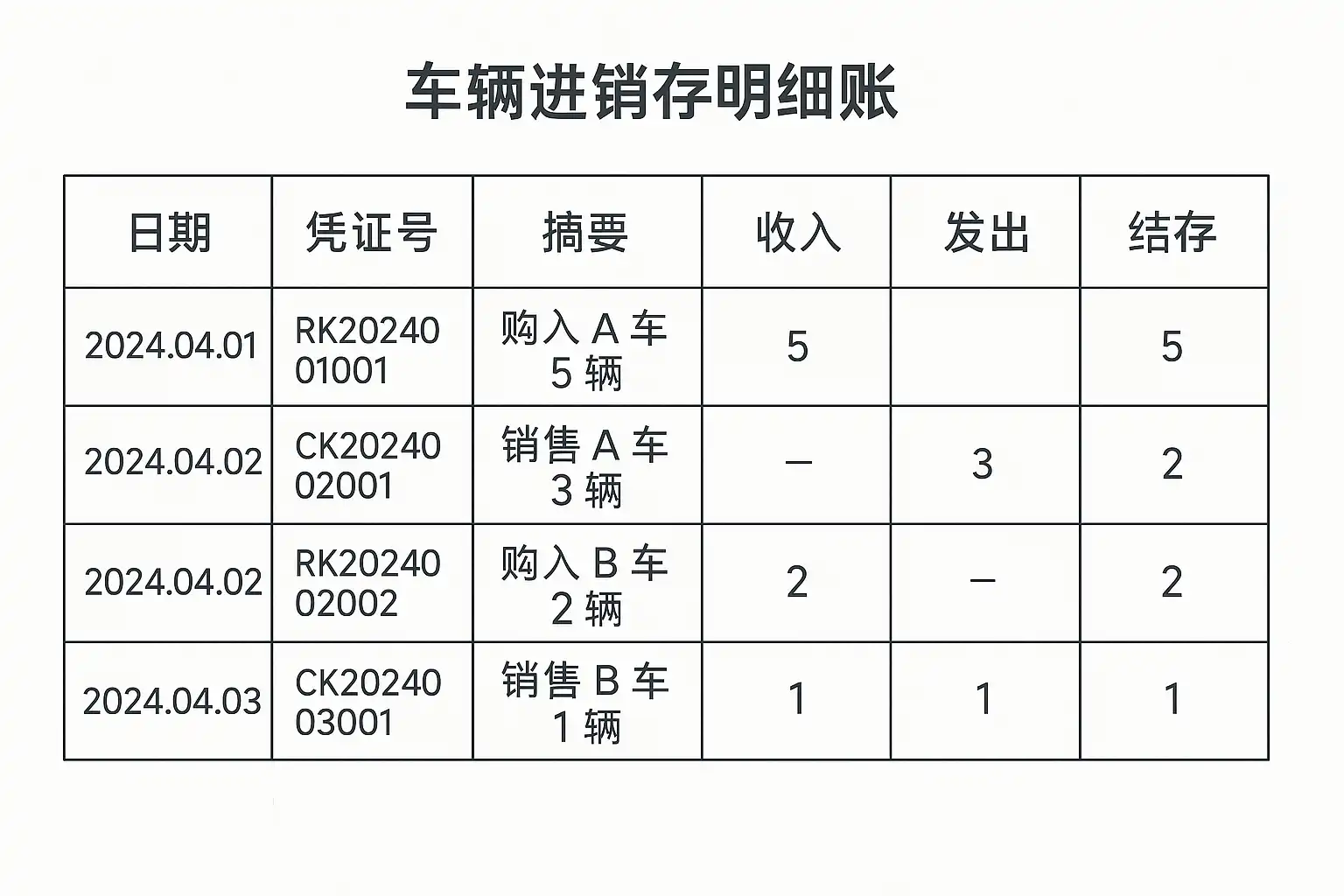 车辆进销存明细账是指对企业在汽车采购(进)、销售(销)及库存(存)全过程进行详细记录和动态管理的一类账簿。其核心作用包括: