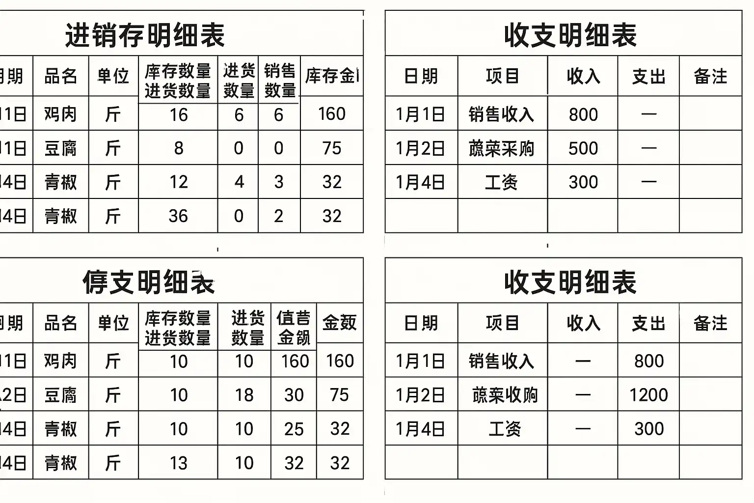 饭店怎么做进销存和收支明细