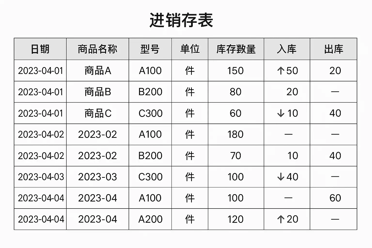 - 模板设计:确保进销存表结构规范,包含商品编码、名称、数量、时间等字段。