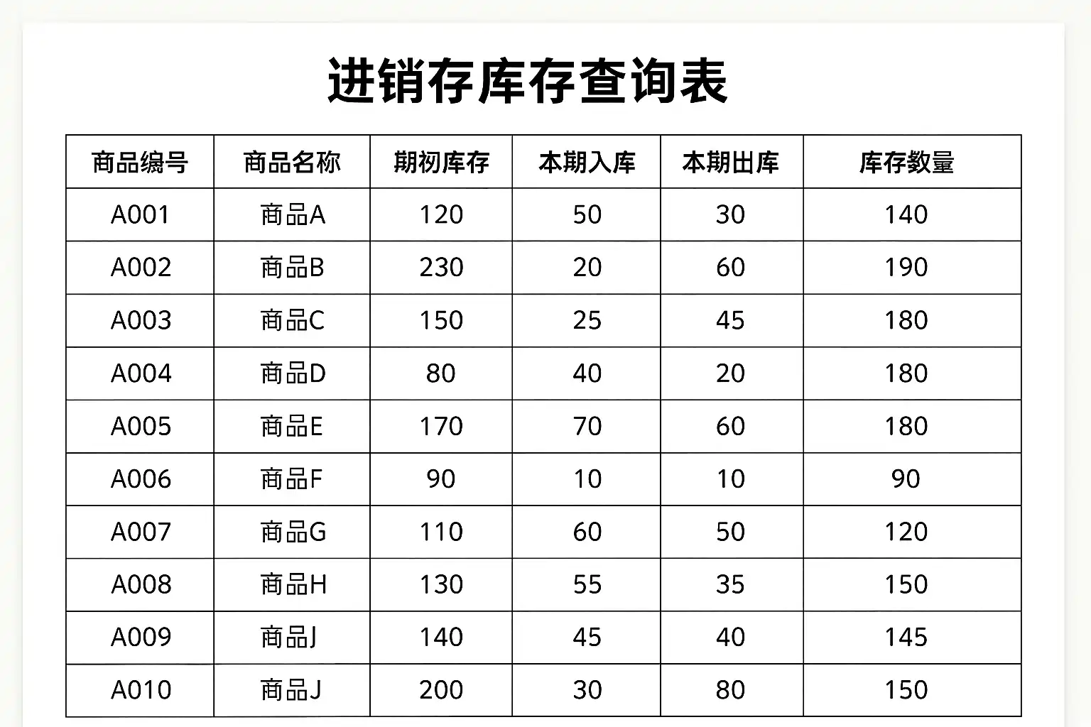 | 期初库存 | 本期开始时该商品剩余数量 |
