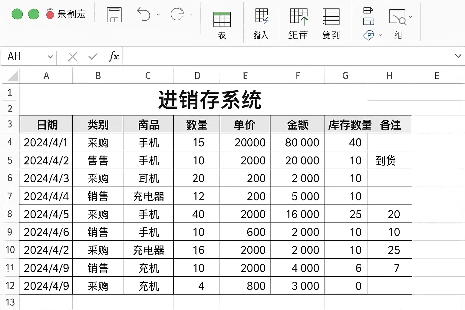 下面以Excel为例,介绍用“录制宏”实现一个简单的进销存业务流程: