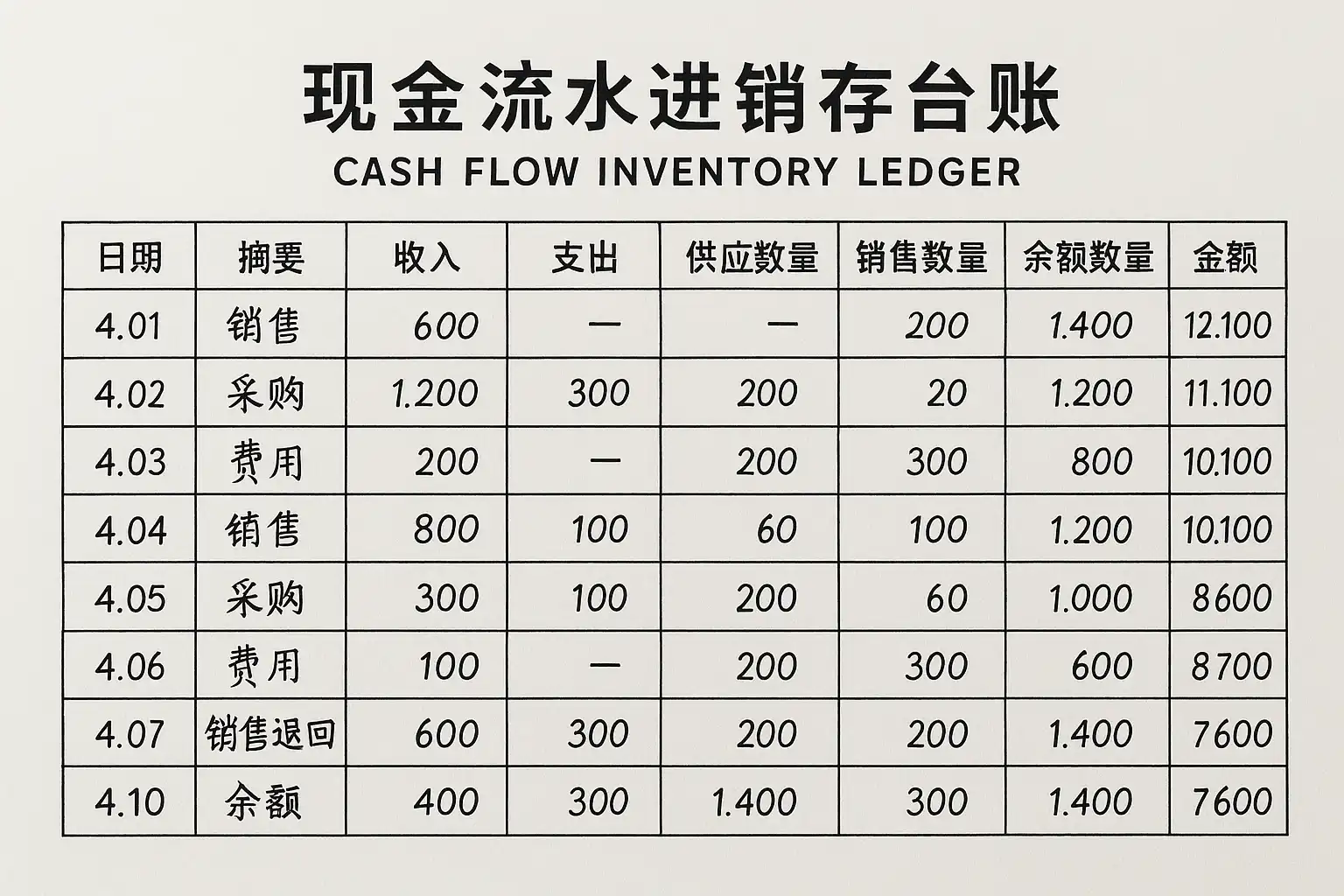 现金流水进销存台账怎么做?