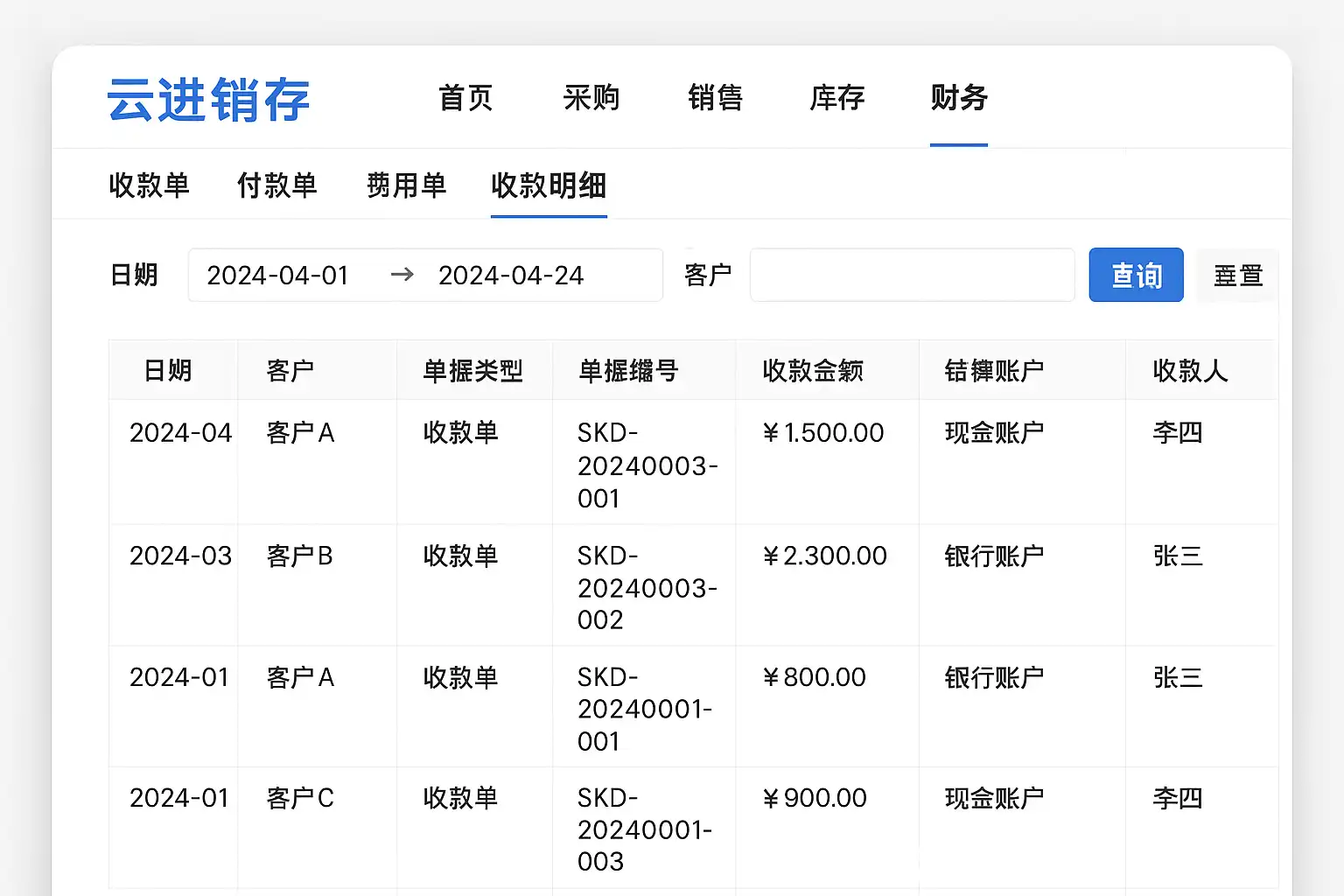 云进销存软件收款明细查询方法,如何快速查看收款明细?