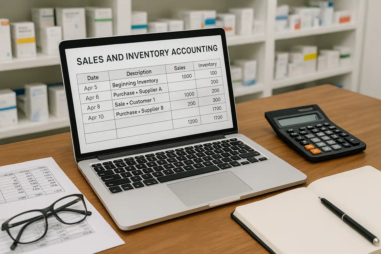 举例来说,当购买100盒某抗生素时,会借记‘库存商品’50,000元,贷记‘应付账款’;销售时则借记‘应收账款’,贷记‘主营业务收入’,并同时确认相应成本。