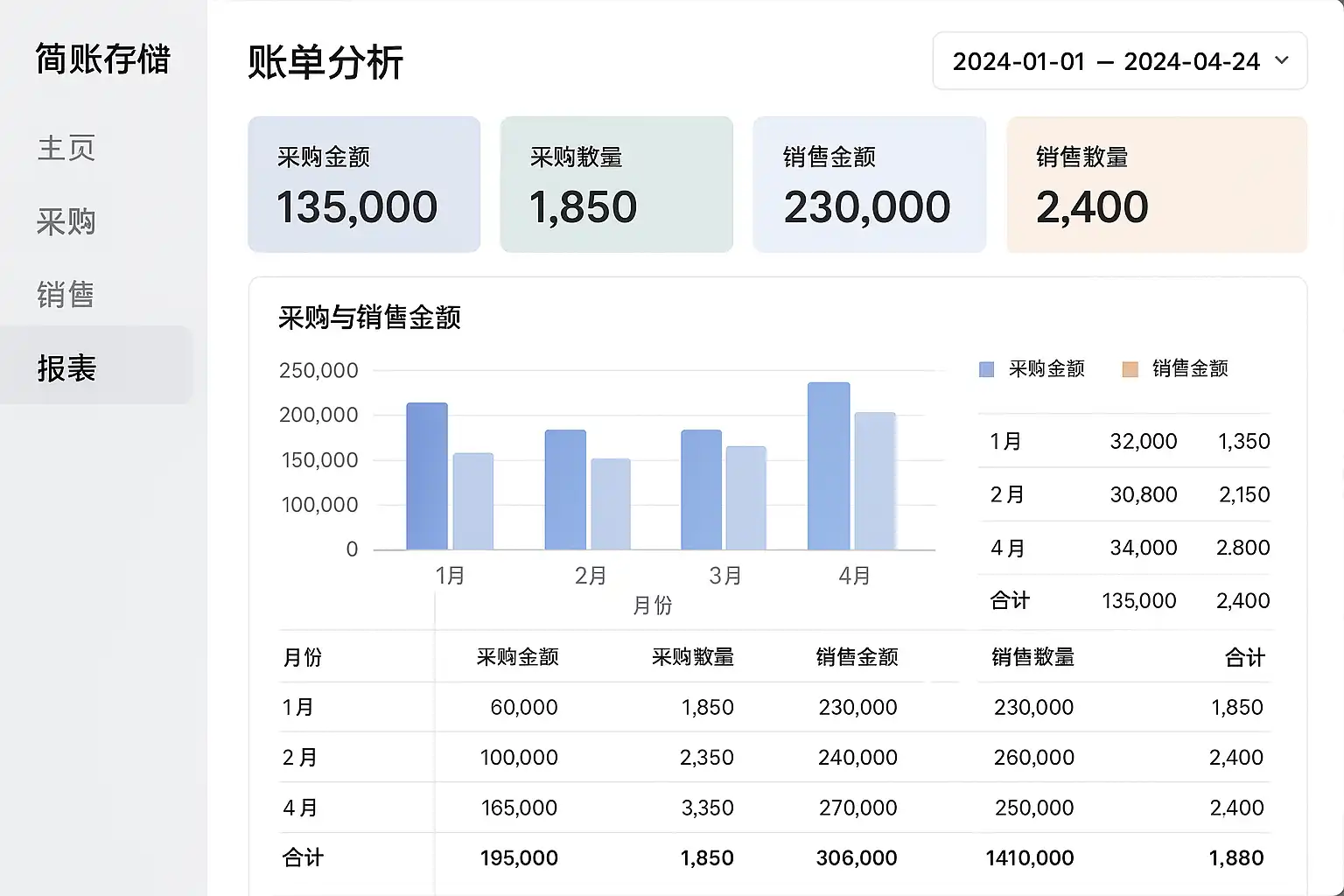 - 报表生成:利用软件自动生成销售报表和采购报表。