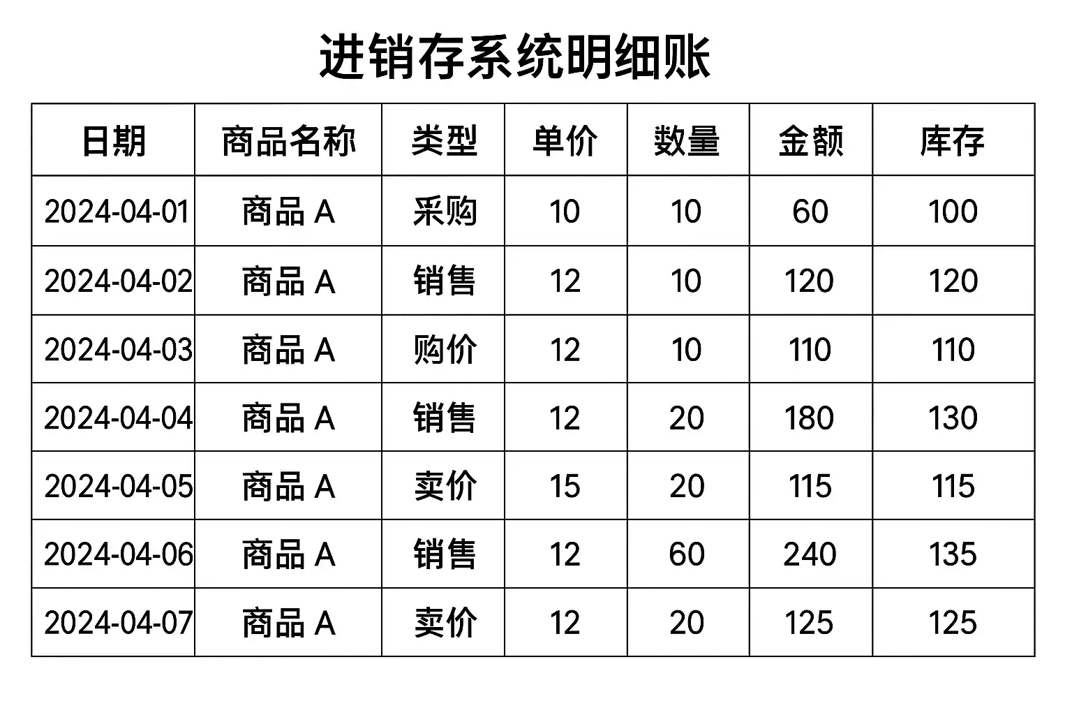 - 系统核算:系统自动根据录入数据生成明细账,实时反映每一笔库存及资金变动。