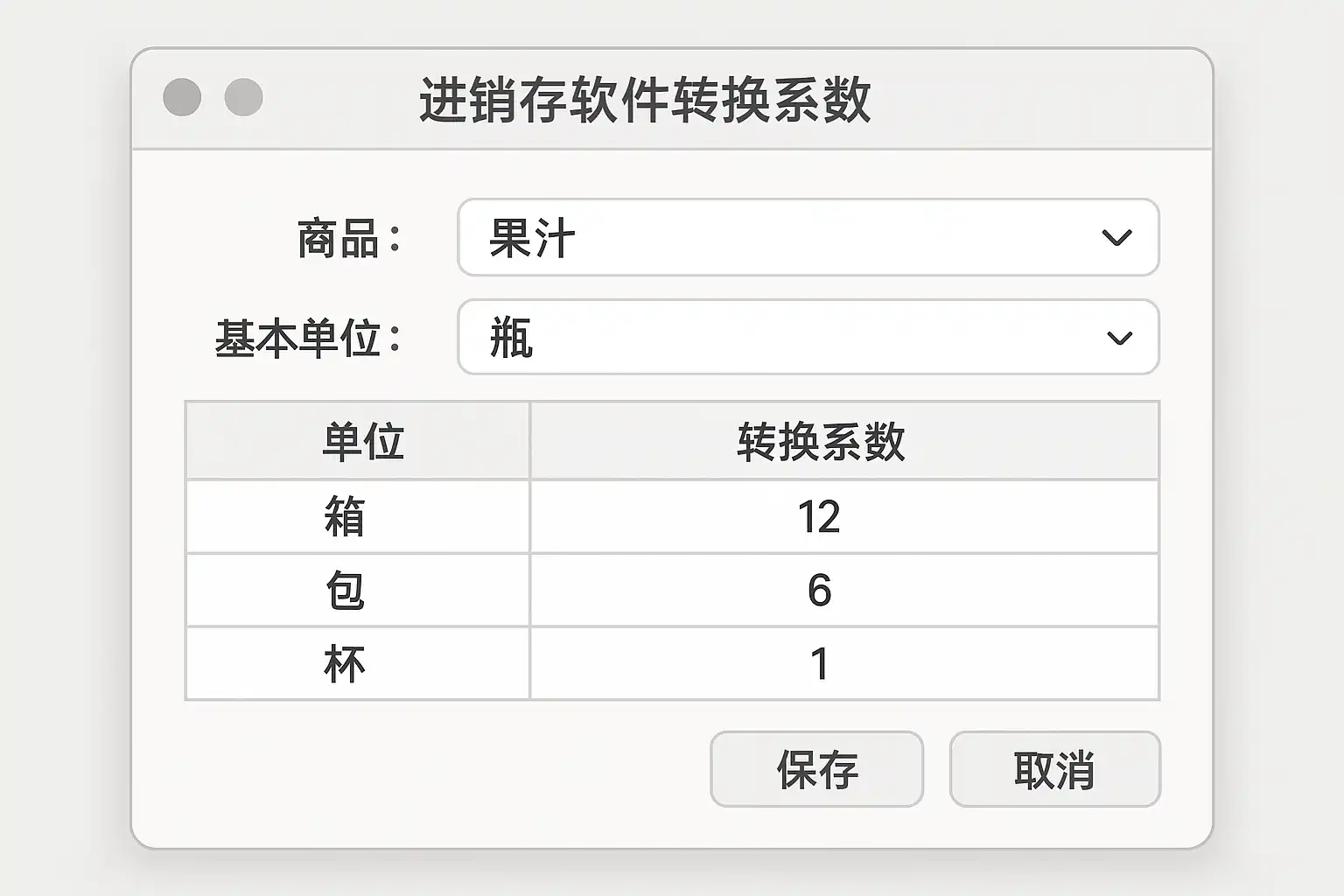 进销存软件中的“转换系数”,指的是用于不同计量单位之间数量折算的比值。它广泛应用于商品采购、仓储与销售环节——例如同一种产品可能用箱、件、个等多种方式核算。合理配置转换系数,是保证数据一致性与业务流畅性的基础。