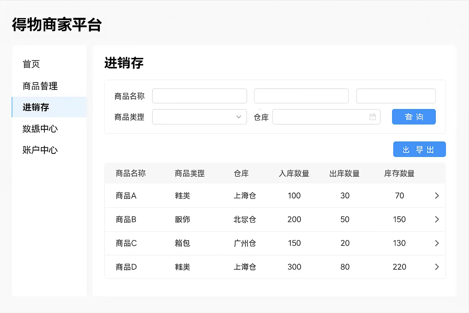 得物是一款专注于潮流电商的平台,为入驻商家提供了完善的商品管理和销售服务。其后台系统设有“进销存管理”模块,用于追踪商品的采购(进)、销售(销)及库存(存)变化。导出这些数据能帮助企业实现: