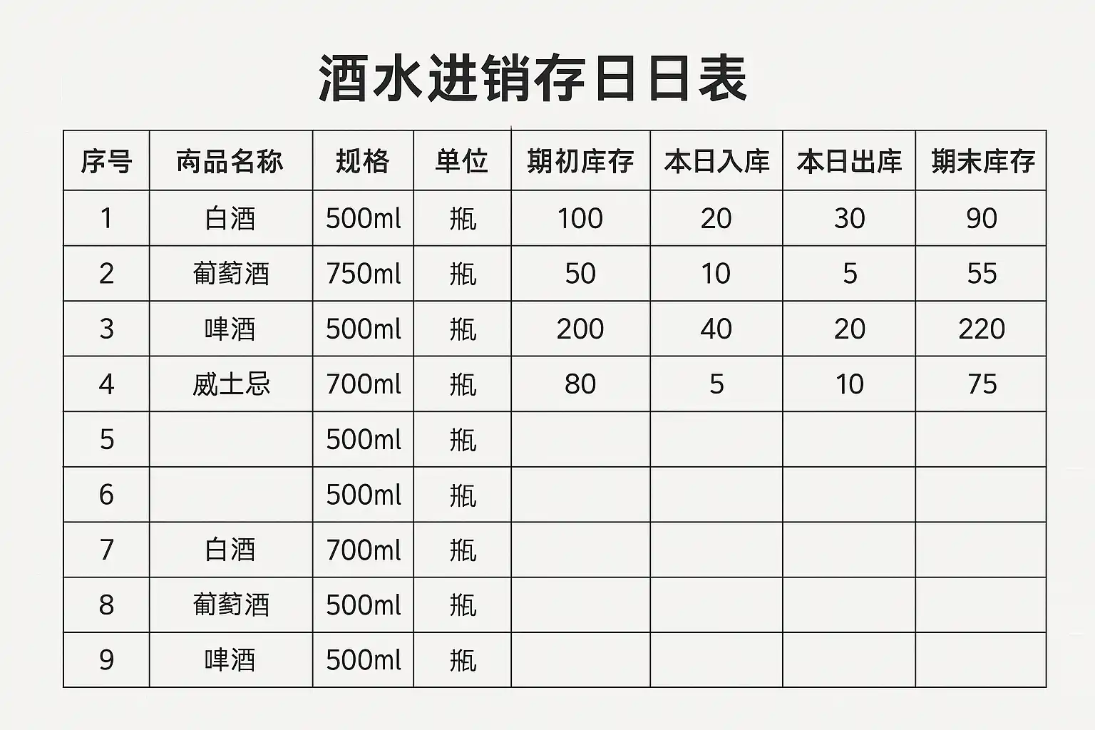 通过以上结构化布局,可以清晰反映每日酒水库存流转情况,便于后续分析与决策。